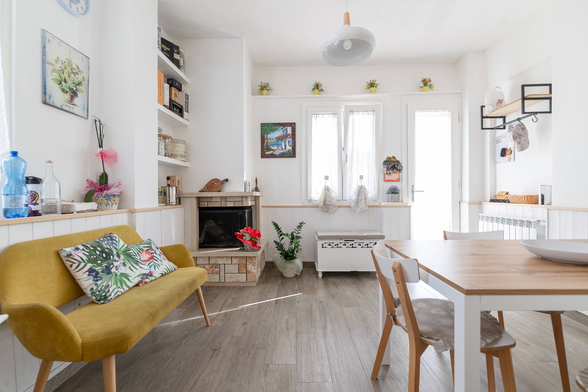 Al piano terra ti accoglie un ambiente caldo e funzionale, con un salone luminoso, una cucina abitabile completa di tinello con camino, una confortevole camera da letto matrimoniale e un bagno.
