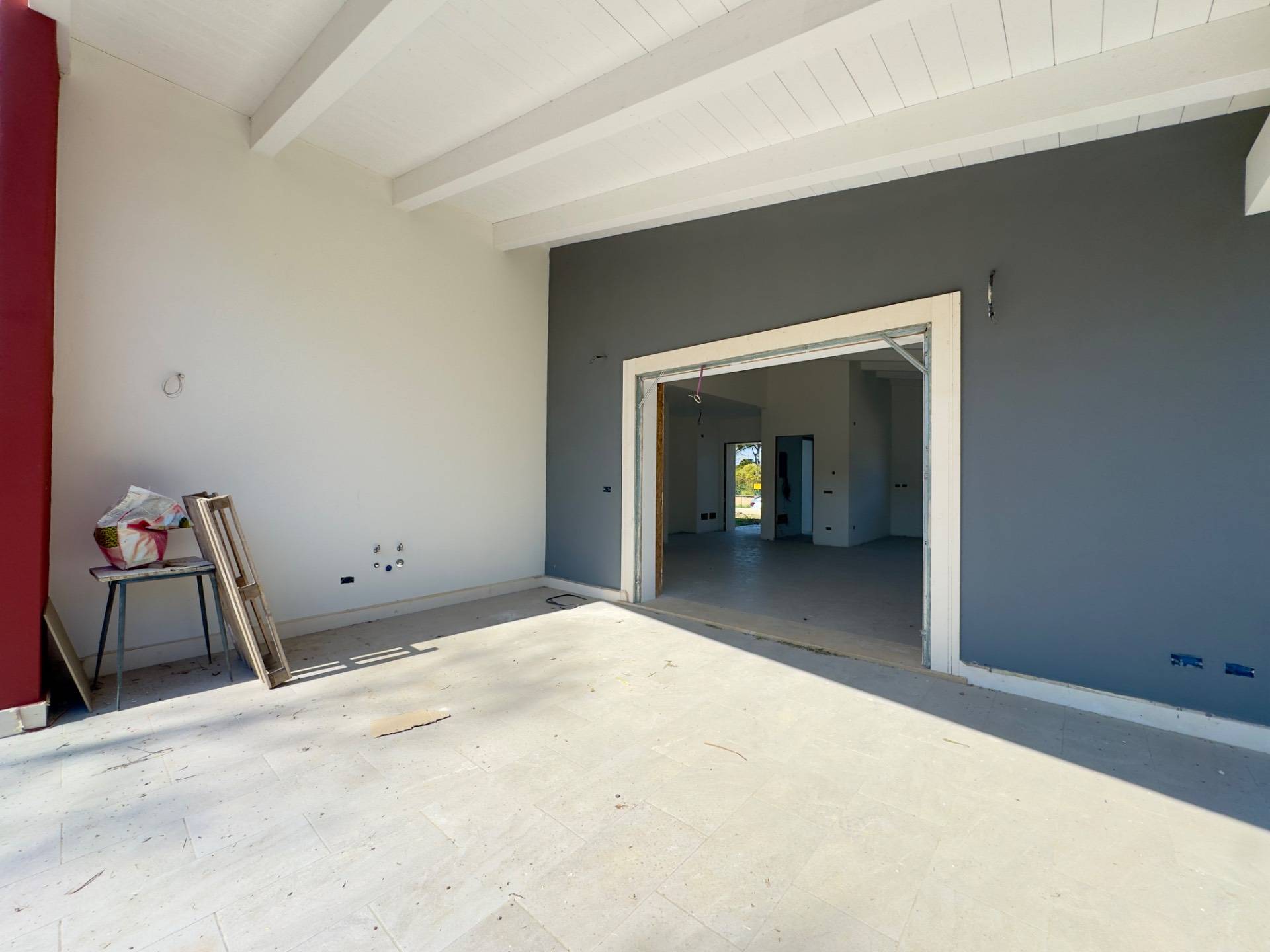 Qui, la cucina abitabile a vista si fonde armoniosamente con l'esterno grazie a un portico gi predisposto per diventare un living monumentale di 80 mq: uno spazio versatile dove i confini tra indoor e outdoor sfumano, perfetto per cene estive o pomeriggi di relax assoluto.