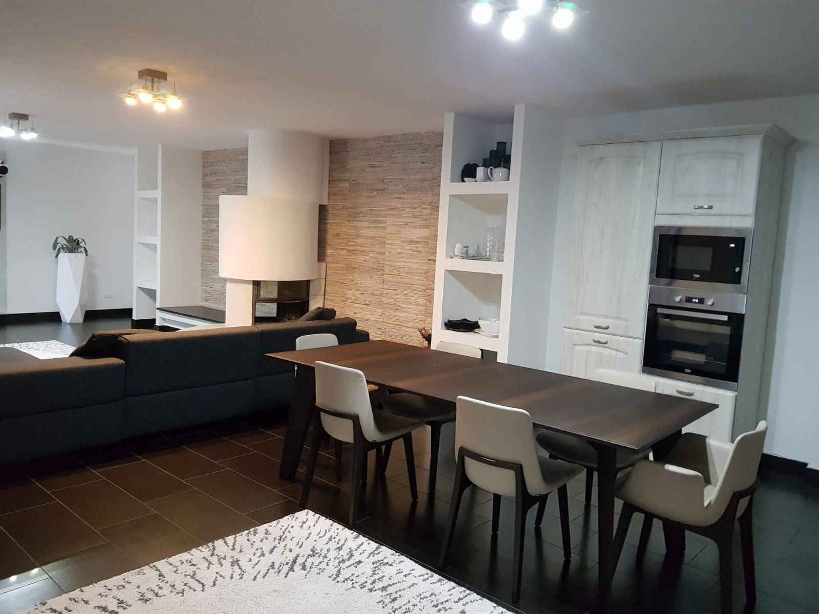 Al piano terra troviamo un ampio e luminoso open space con servizio, cucina e camino.
