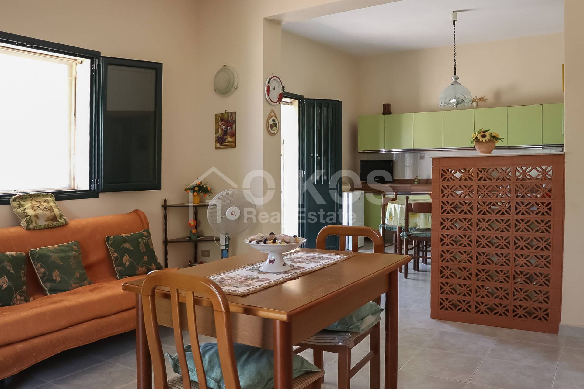 Allinterno, la villa si sviluppa su un unico piano ed composta da una spaziosa cucina, perfetta per chi ama cucinare, e un luminoso soggiorno che invita al relax e alla convivialit.