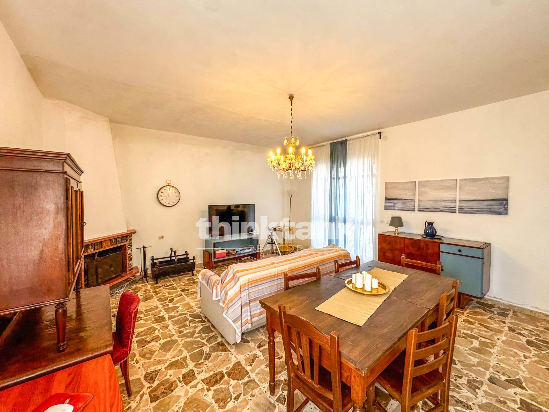 La villa si sviluppa su quattro vani oltre servizio ed cos composta: ingresso da veranda coperta; disimpegno con accesso a cucina abitabile e bagno; corridoio che conduce a due camere da letto matrimoniali e al soggiorno.