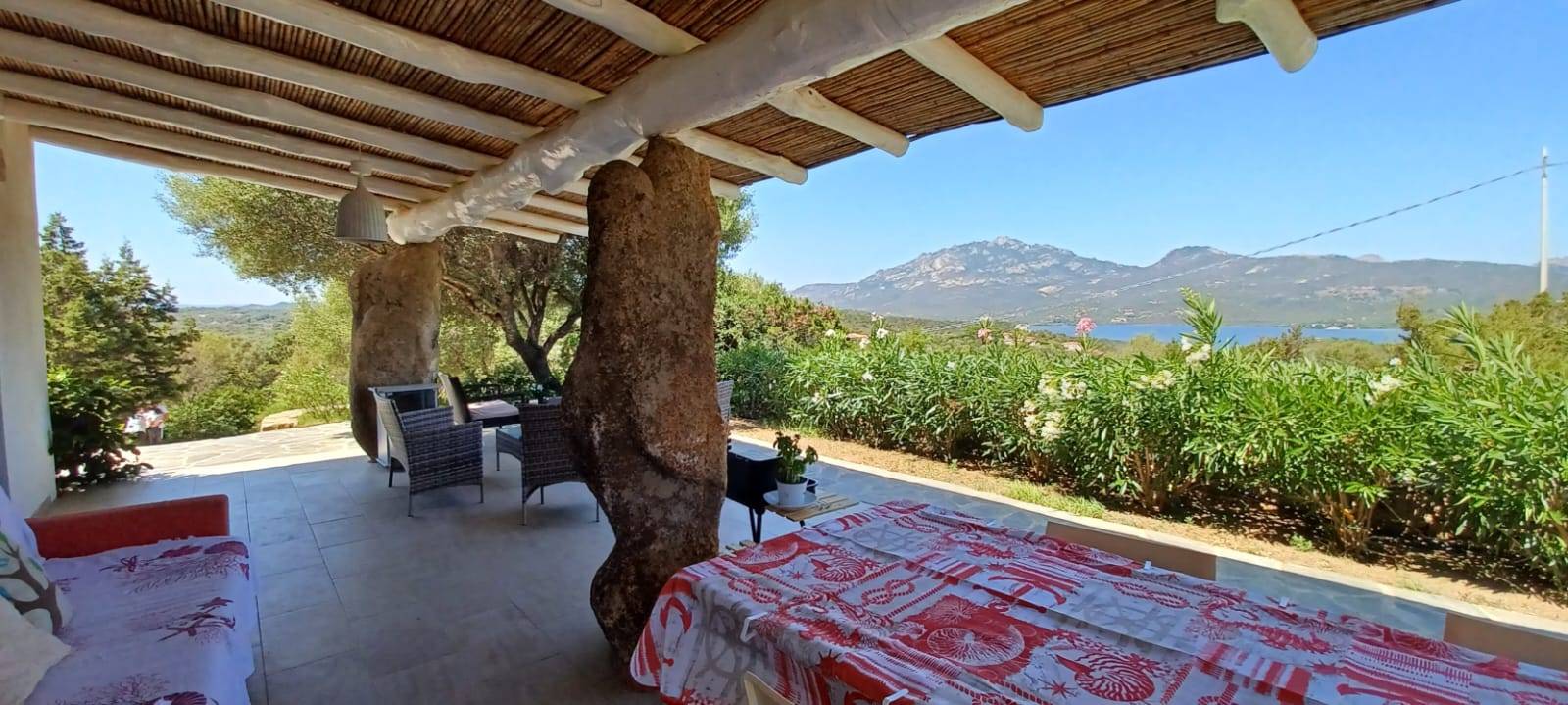Lampia terrazza coperta rappresenta uno degli ambienti pi affascinanti della casa: uno spazio esterno vivibile tutto lanno, riparato e scenografico, da cui godere della vista sul giardino e sul mare, immersi nella pace assoluta della collina.