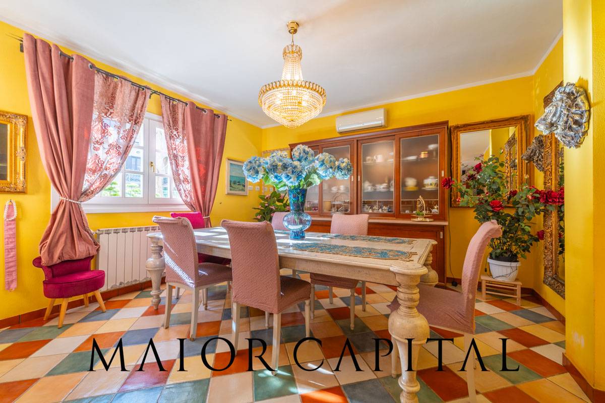 Cos composta: Piano terra Veranda dalle generose dimensioni Terrazzo Ampia zona living composta da soggiorno, sala da pranzo e cucina abitabile Studio Bagno di servizio Primo piano Tre camere matrimoniali ciascuna con bagno privato e balcone Ambiente attualmente adibito a sala lettura Piano seminterrato (attualmente adibito a): Taverna con living Due camere da letto Due cabine armadio Locale adibito a deposito Dotazioni: Aria condizionata Termosifoni Stufa a pellet Ripostiglio Giardino privato Cancello elettrico Posto auto scoperto Perch acquistarla? #1 Zona residenziale di pregio #2 Ampi e signorili spazi interni ed esterni #3 Possibilit di ricavare due unit abitative #4 Ideale sia come prima casa che per la realizzazione di un progetto turistico #5 A 12 minuti da porto e aeroporto internazionale Olbia Costa Smeralda Maior Capital il Gruppo Immobiliare di riferimento per l'acquisto e la vendita di propriet in Sardegna, offrendo la pi ampia selezione di propriet di lusso, case di charme e natura in ununica collezione.