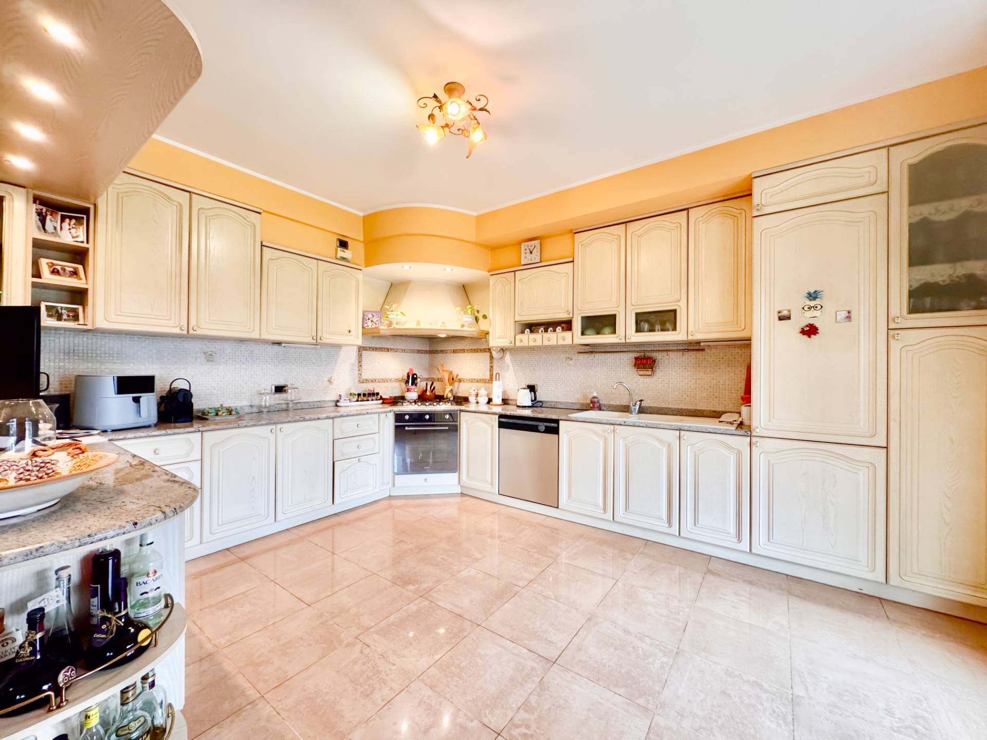 Al piano terra si apre un magnifico salone di rappresentanza, perfetto per accogliere ospiti e vivere momenti di convivialit, affiancato da una cucina abitabile spaziosa e funzionale.