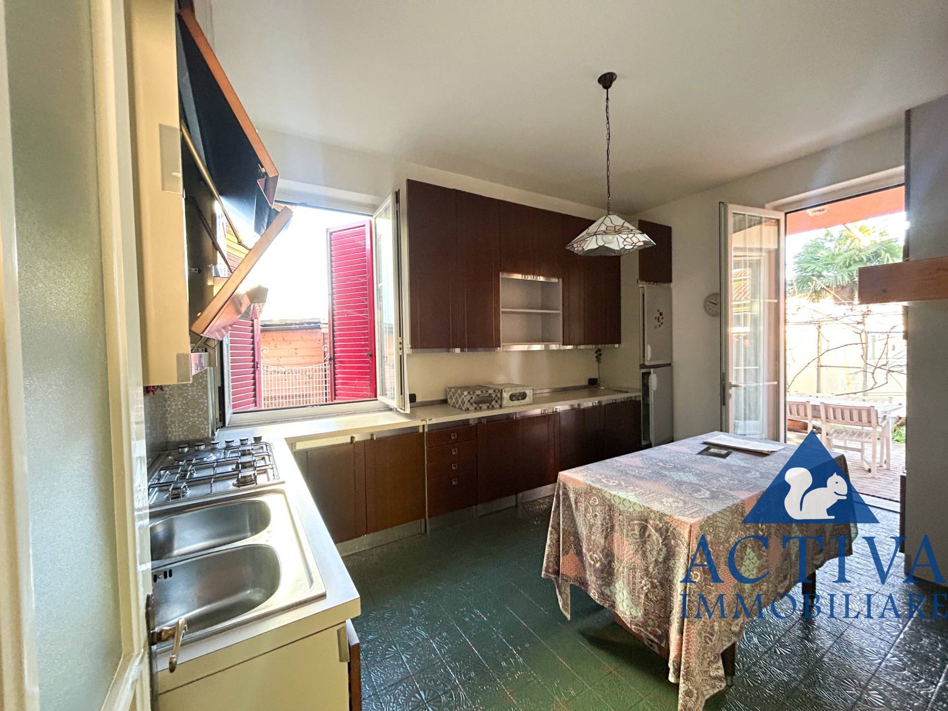 La cucina abitabile, anchessa con affaccio sul portico, invita a vivere appieno gli spazi esterni.