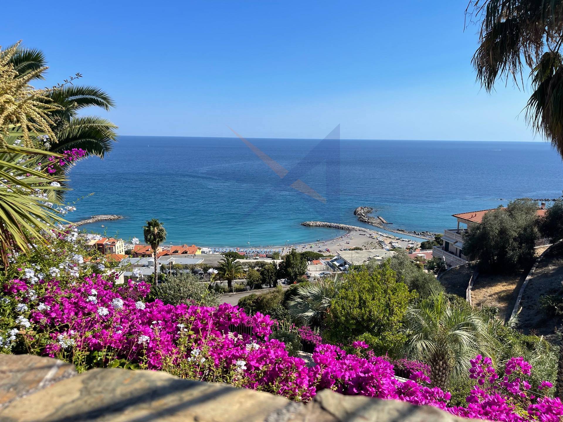 Ospedaletti, nella prima collina verdeggiante e panoramica, splendida villa con imprendibile vista mare, di recente costruzione e con supercifie pari a 400mq disposti su 3 piani.