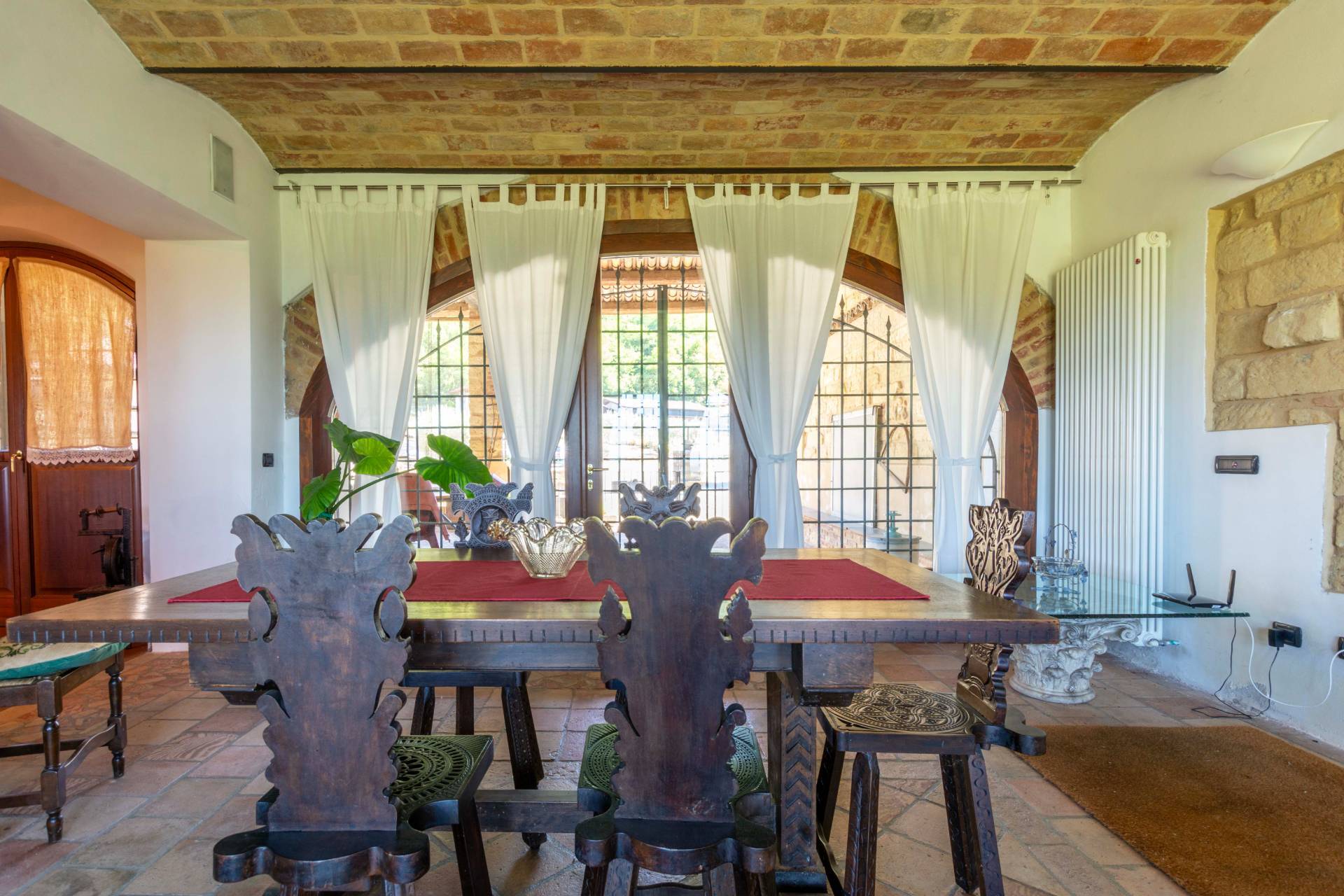 La scelta dei materiali e delle finiture soffitti in mattoni, pavimenti in cotto, internamente parquet di prima scelta e pareti in pietra da cantoni conferisce agli ambienti un carattere autentico e accogliente.