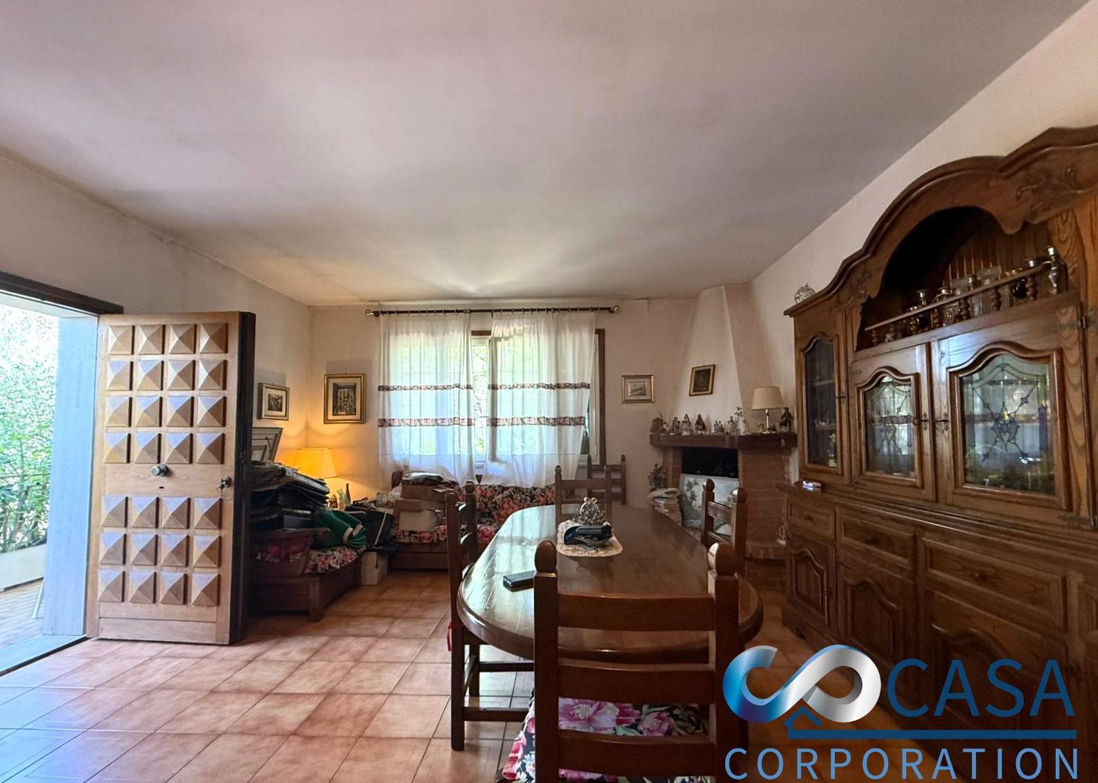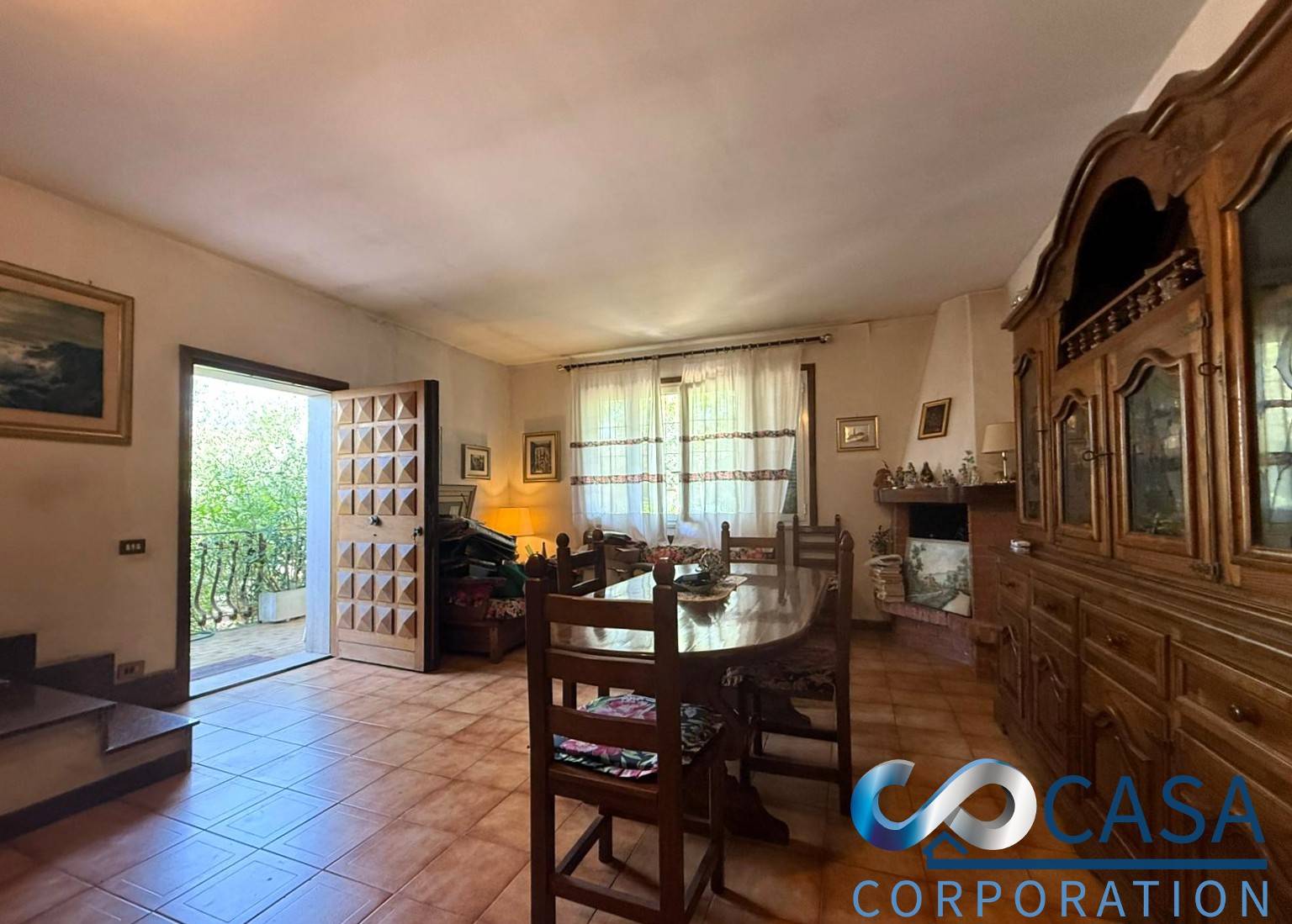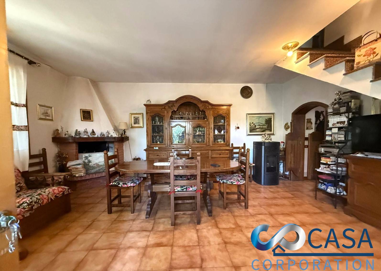 L'immobile si presenta in buono stato interno, dotato di: porta blindata, infissi doppio vetro/alluminio a risparmio energetico, persiane blindate, Completa la villa un terreno agricolo di 4.500 mq confinante con il bosco, box auto/dependance e vari posti auto, tre camini funzionanti, tre bagni, terrazzo di circa 60 mq., terreno di competenza circa 4.500 mq con olivi e alberi da frutta; Completamente recintata e indipendente; Grazie alla sua comoda metratura e disposizione possibile accogliente pi nuclei familiari e/o modificare la disposizione interna.