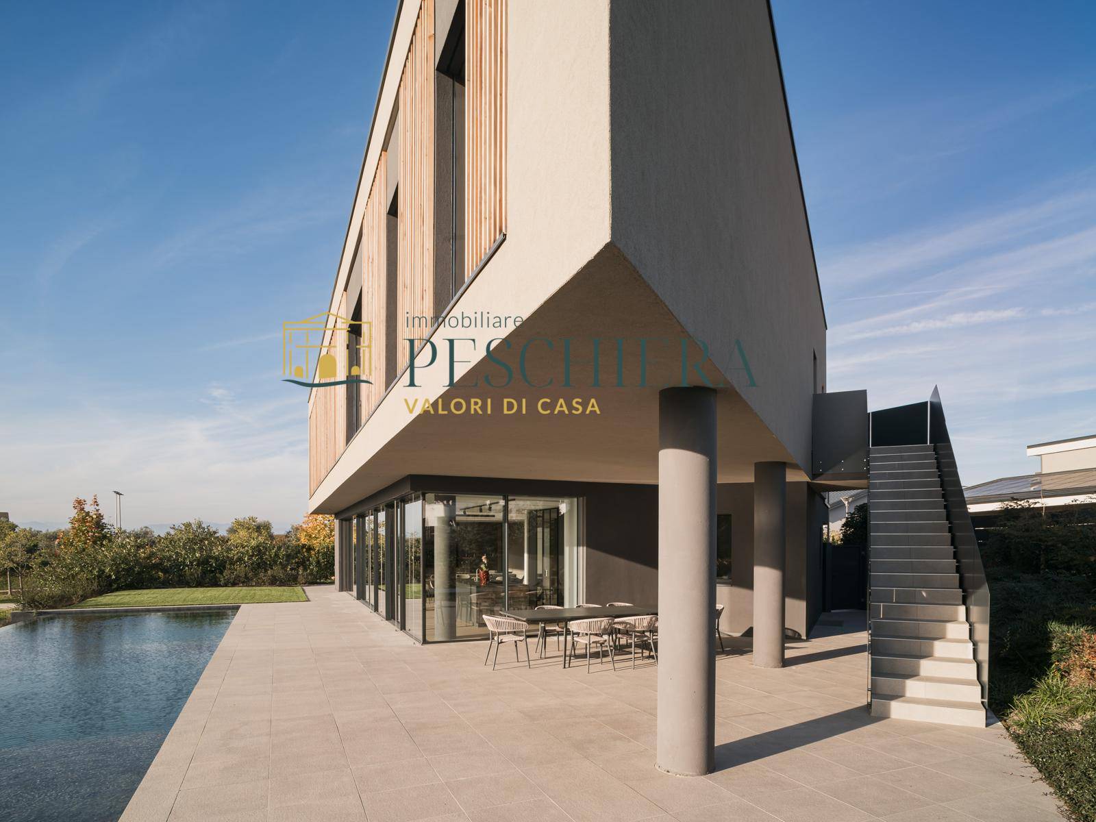 La propriet, circondata dal verde e situata a pochi passi da un suggestivo laghetto naturale, si estende su un lotto di circa 1.000 mq e si distingue per il suo stile contemporaneo, le finiture di design e la perfetta armonia tra spazi interni ed esterni.