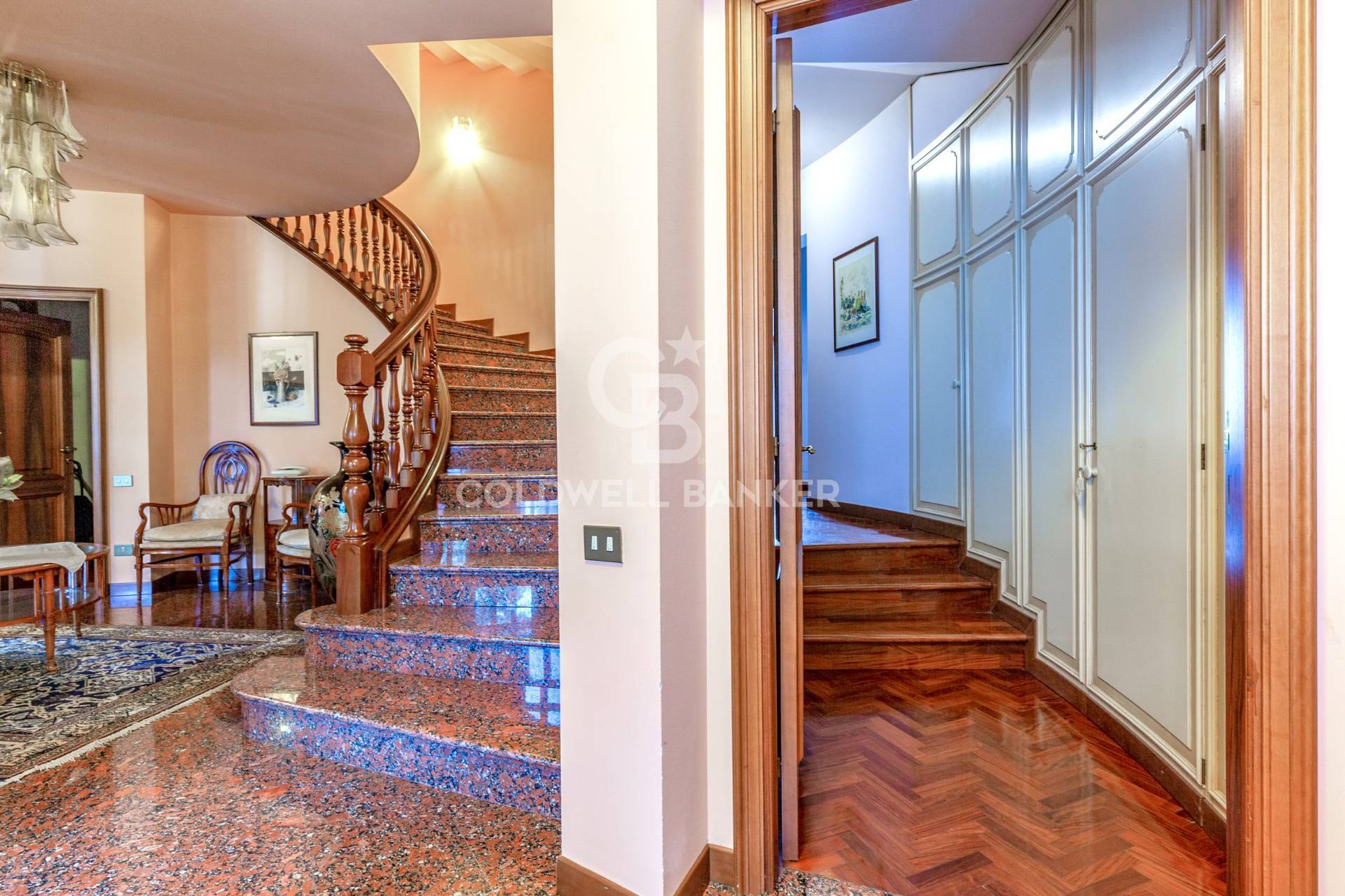 La propriet situata in posizione panoramica circondata da un giardino finemente curato di circa 4.300 mq, arricchito da una splendida piscina 12x6. COMPOSIZIONE INTERNA La villa caratterizzata da una scala interna che collega i tre piani.