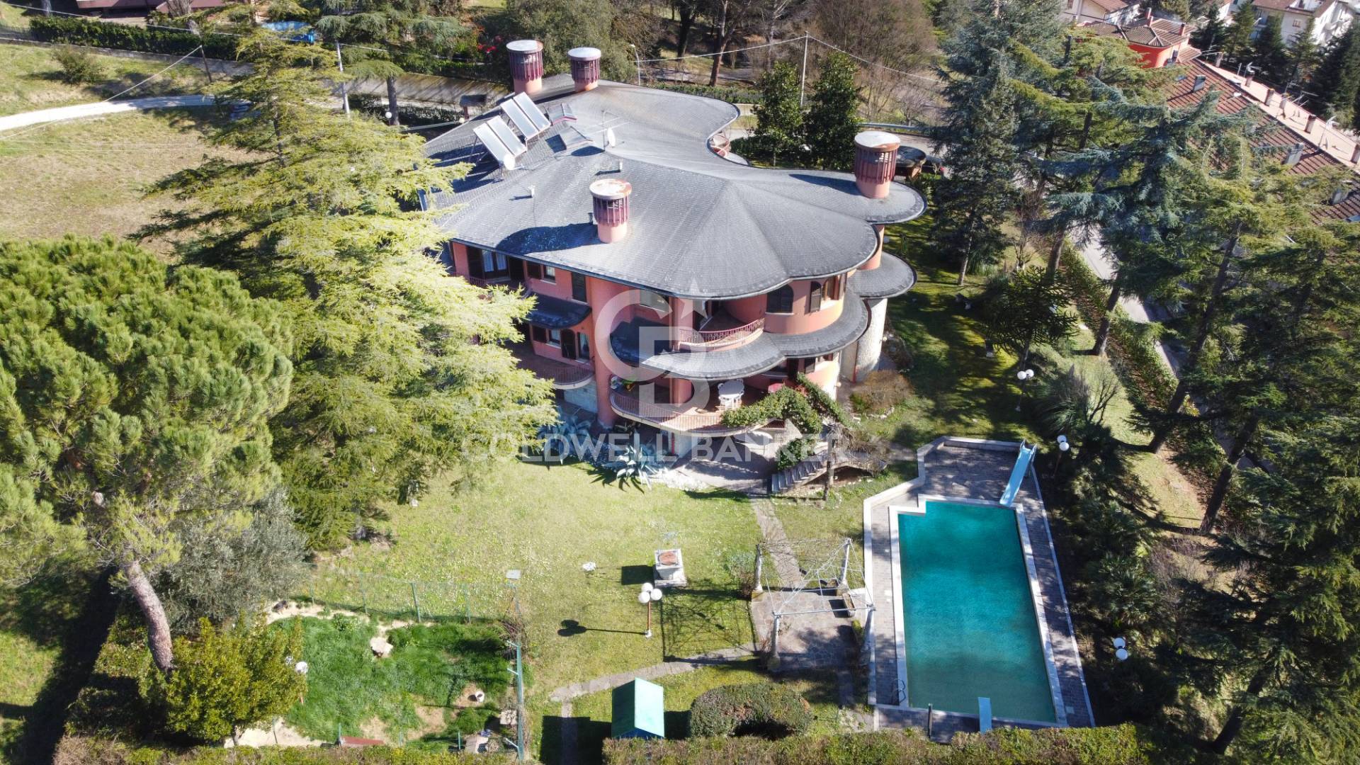 La propriet situata in posizione panoramica circondata da un giardino finemente curato di circa 4.300 mq, arricchito da una splendida piscina 12x6. COMPOSIZIONE INTERNA La villa caratterizzata da una scala interna che collega i tre piani.