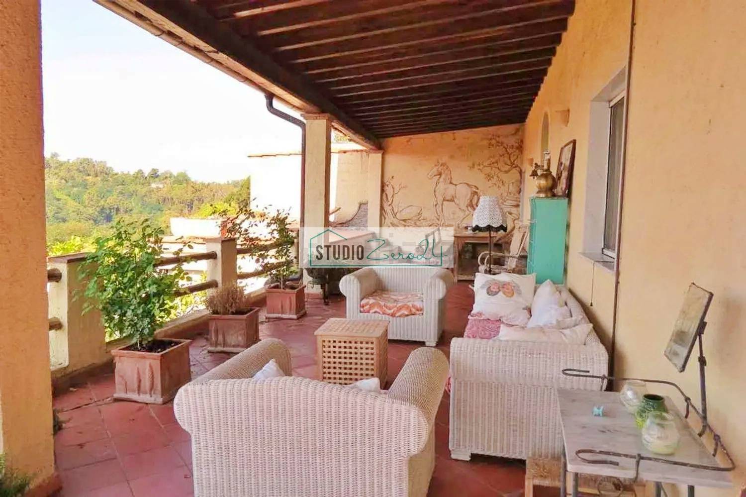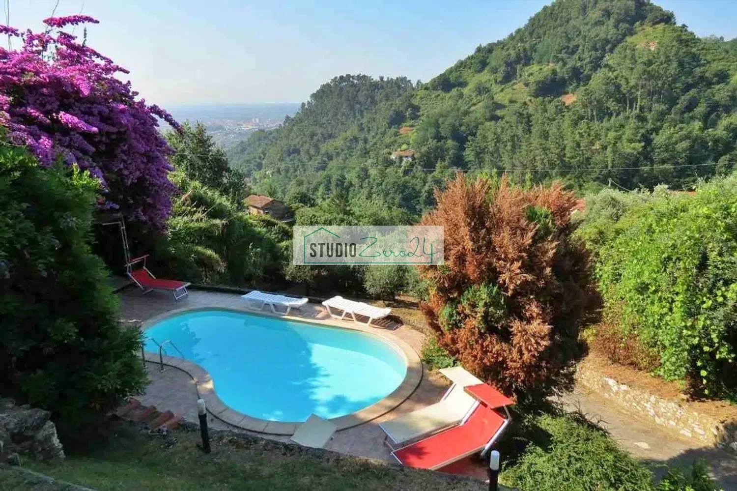 Pietrasanta, prima collina, vista mare. Villetta bifamiliare con circa 3000 mq di terreno, in parte a giardino con splendida piscina a sfioro con meravigliosa vista mare, composta da: al piano terra, grande porticato d'ingresso ad angolo coperto con terrazza solarium con vista mare, ingresso principale, zona giorno, cucina abitabile con grande camino con uscita nella zona attrezzata esterna, ripostiglio e bagno.