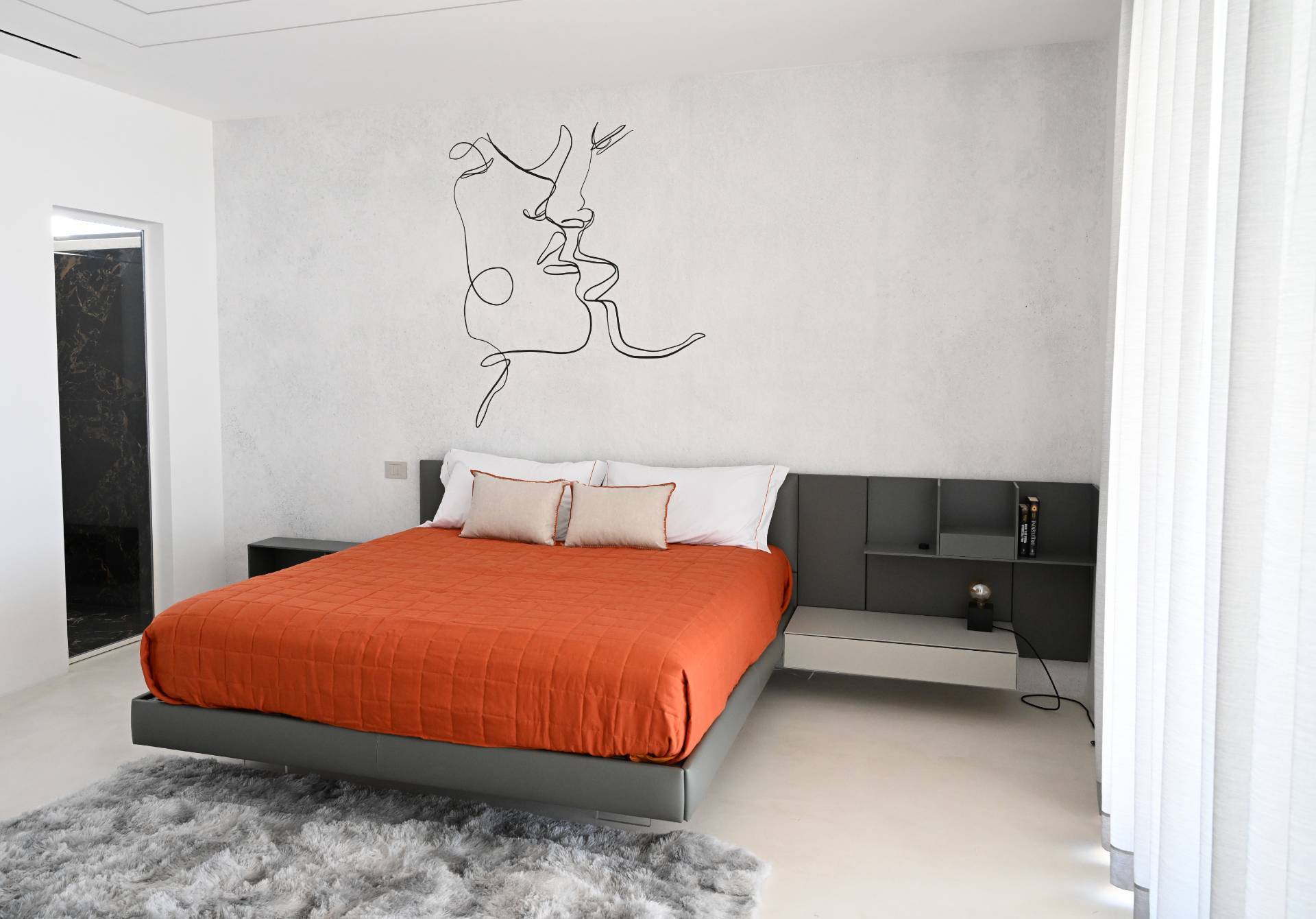 La master suite, ampia e sofisticata, regala unesperienza da boutique hotel: bagno di pregio con finiture ricercate, armadio con TV integrata e accesso diretto alla zona esterna.