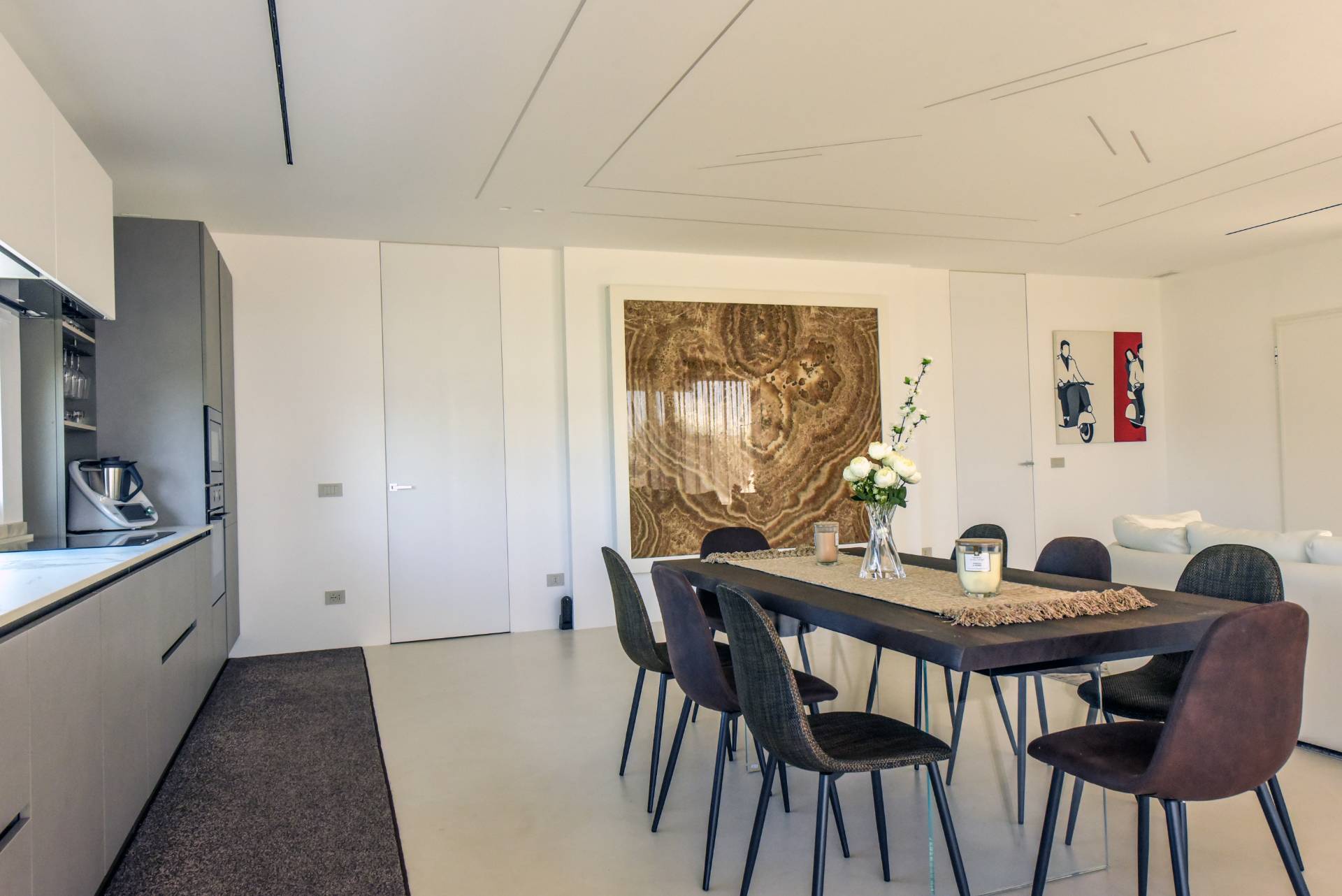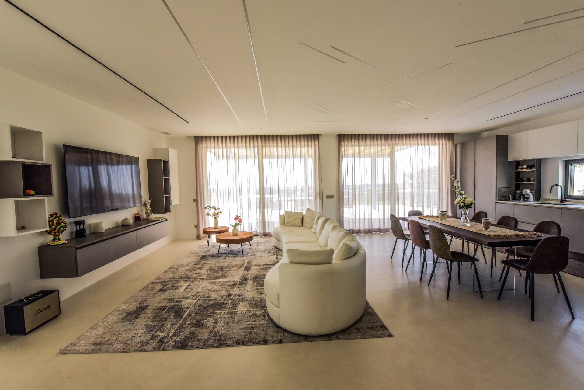 Ogni dettaglio stato studiato per offrire una sensazione di equilibrio e raffinatezza: pavimenti continui in resina, complementi darredo su misura e un uso di luci LED dinamiche che creano scenari personalizzati in ogni ambiente.