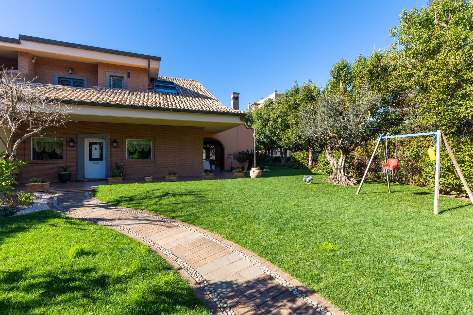 POMEZIA VIA TITO LIVIO La Coldwell Banker lieta di proporre in vendita una splendida ed esclusiva villa di 400 mq commerciali dotata di rifiniture di pregio disposta su pi livelli ed composta da una luminosa zona giorno al piano terra che si compone di un salone con camino, cucina abitabile, camera da letto, bagno, meravigliosa veranda ad angolo di mq 60 dotata di forno a legna e uno splendido giardino di 300 mq c.a. disposto su tre lati; la zona notte posta al primo piano collegata da una sontuosa scala in marmo Calacatta e ferro battuto composta da tre camere da letto, di cui una con cabina armadio doppio livello completamente rivestita in legno e bagno en suite dotato di vasca/doccia idromassaggio, oltre ad un bagno con doccia e due ampi balconi; al piano seminterrato troviamo un luminoso ampio salone con cucina a vista dotata di forno a legna, interamente rivestita con ceramiche di Vietri, bagno, disimpegno, camera da letto con bagno, lavanderia e uno spazioso ripostiglio.