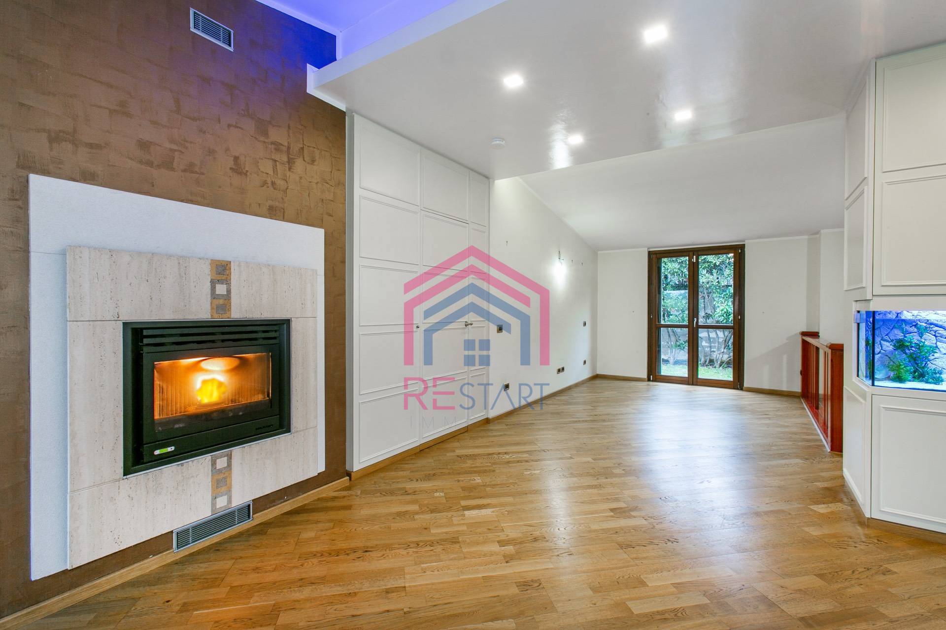 Entrando al piano terra troviamo un ampio e luminoso salone con termocamino a pellet, la sala composta da diversi finestrini con splendida vista sul verde, inoltre vi una grande porta finestra scorrevole che da accesso sull'ampia veranda e sul giardino circostante, proseguendo vi una comoda e abitabile cucina in muratura, anche questa provvista di porta finestra scorrevole che da accesso sul giardino retro, proseguendo sempre a piano vi un disimpegno, una cameretta, un bagno ed in fine la camera matrimoniale con bagno privato, cabina armadio e una porta finestra che si apre sull' ampia e comoda veranda chiusa a vetri.