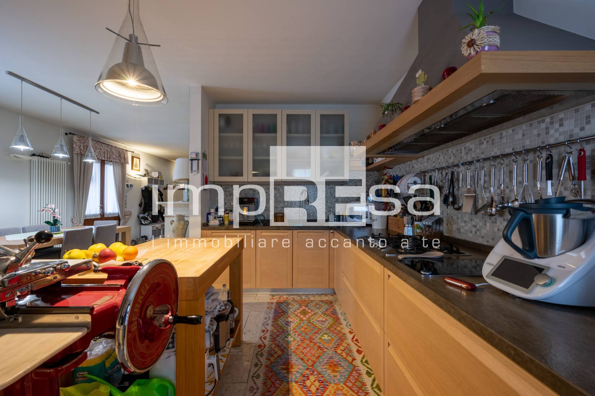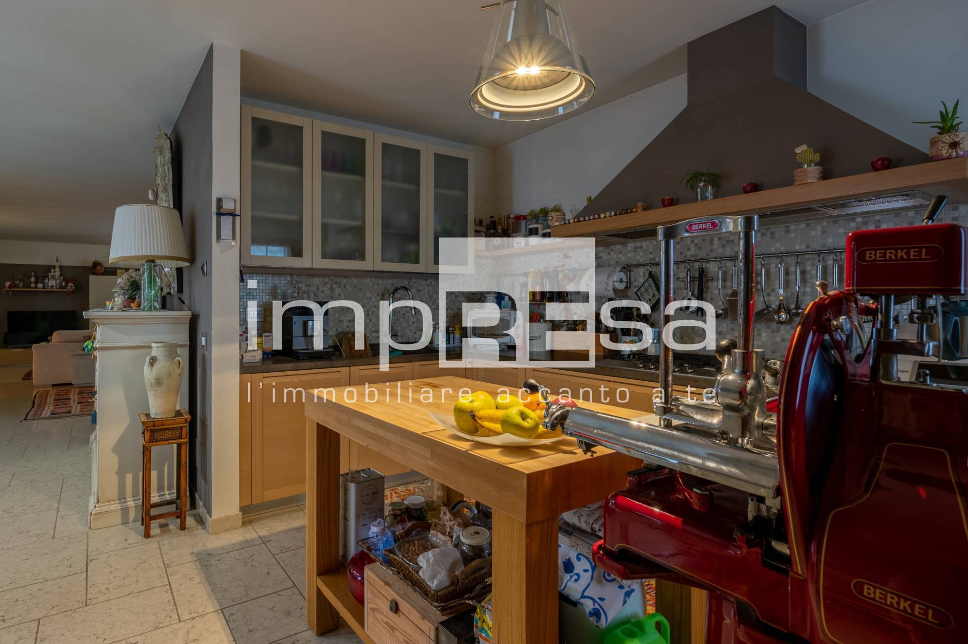 Dal soggiorno si accede ad una stanza adibita attualmente a studio, pu fungere da "stanza creativa" grazie alla sua particolare esposizione verso l'esterno data da grandi finestre: la vista nel giardino veramente suggestiva! Passando attraverso la zona pranzo si arriva ad una pratica e funzionale cucina.