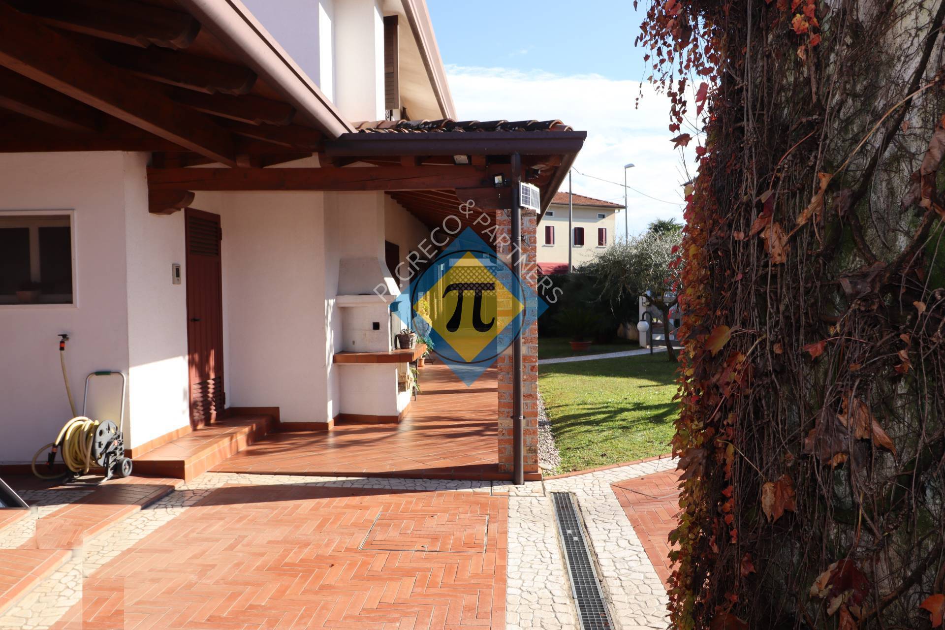 Lussuosa porzione di bifamiliare con magnifico giardino ottimamente piantumato che ne perimetra due dei tre lati. La villa una propriet di famiglia completamente ristrutturata dai proprietari a met anni 80; sono stati utilizzati dei materiali solidi e delle finiture di alto livello infatti troviamo pavimenti in cotto sia nella zona giorno che nella pavimentazione esterna oltre alla presenza del sasso bianco e del mattone a vista; la zona notte in parquet di legno, le maioliche dei bagni sono a di particolare pregio nei colori e nei disegni mentre tutti i soffitti esterni sono in legno con travatura a vista.