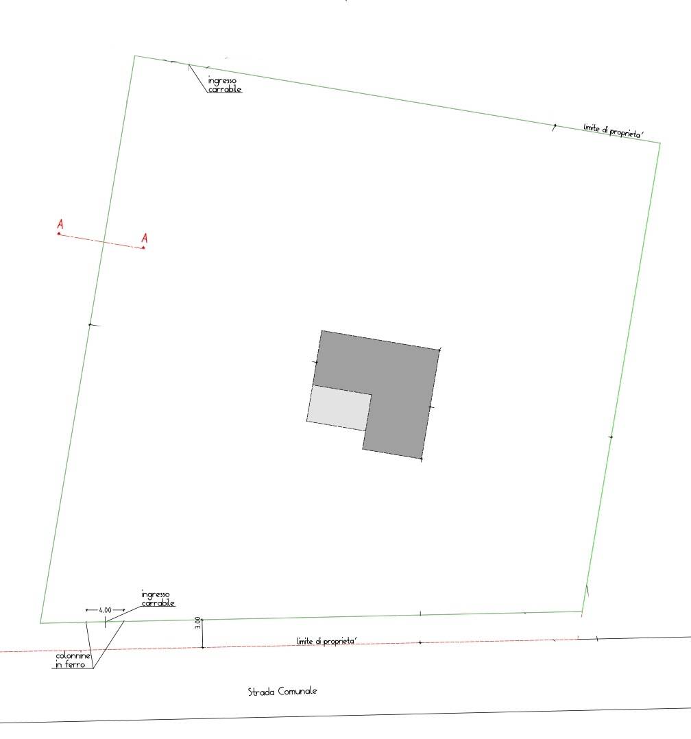 In splendida posizione collinare, immersa nel verde e con vista sulla costa, vendesi abitazione singola delle dimensioni totali di circa 170 mq, composta di: piano terreno, delle dimensioni di circa 117 mq oltre portico esterno di circa 26 mq; piano primo, delle dimensioni di circa 53 mq, da realizzare attraverso la costruzione di un solaio o soppalco.