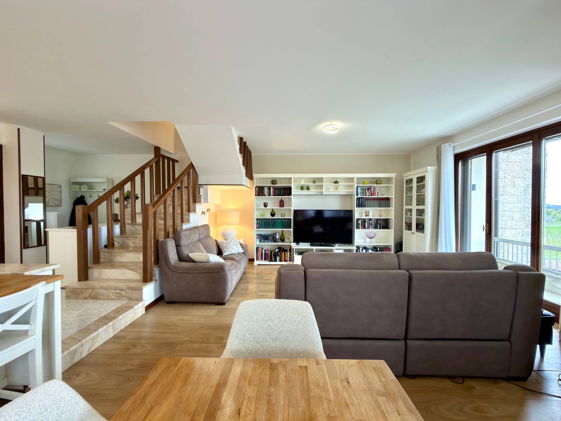 La zona living molto ampia e luminosa, dotata di cucina a vista, zona soggiorno e zona pranzo, tutte con il giusto spazio.