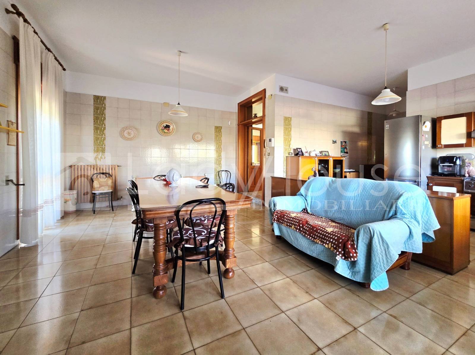 Limmobile dispone di due ingressi: da quello principale si accede direttamente allo spazioso soggiorno, reso particolarmente luminoso grazie alla sua esposizione angolare e dalle tante vetrate presenti.