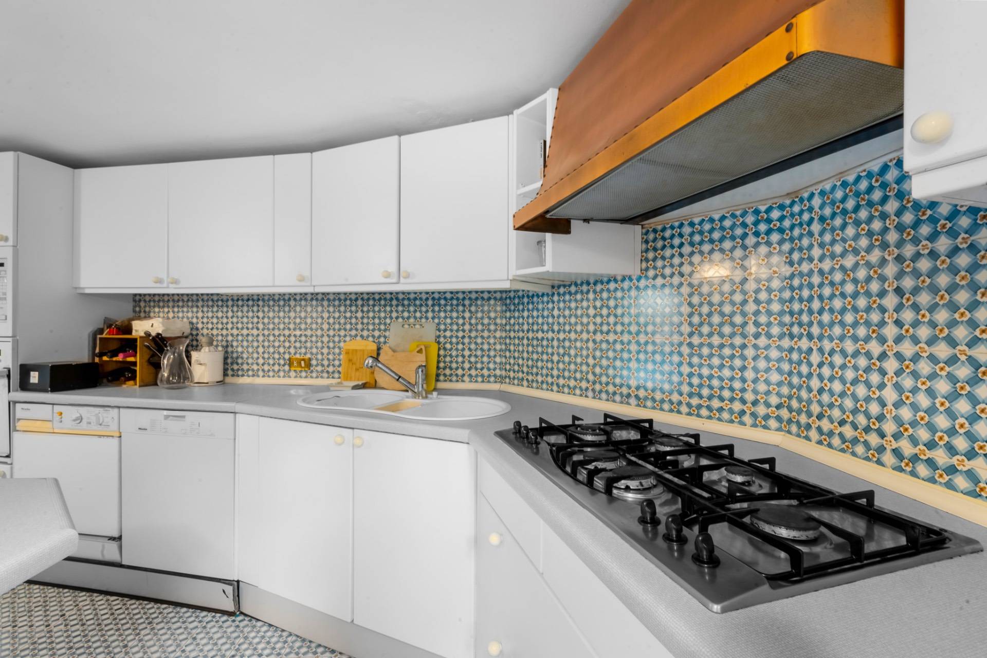La cucina, anch'essa dotata di accesso diretto a una zona di servizio esterna, si collega armoniosamente agli altri ambienti.