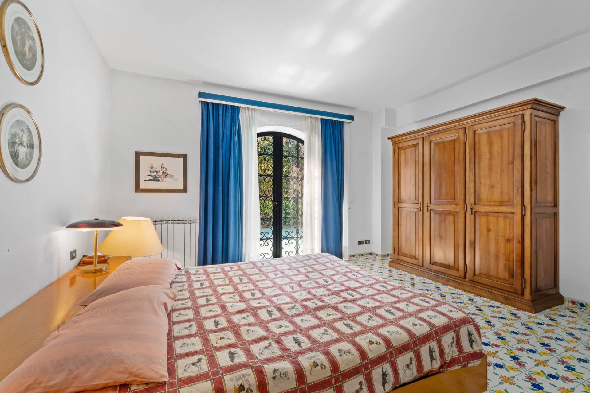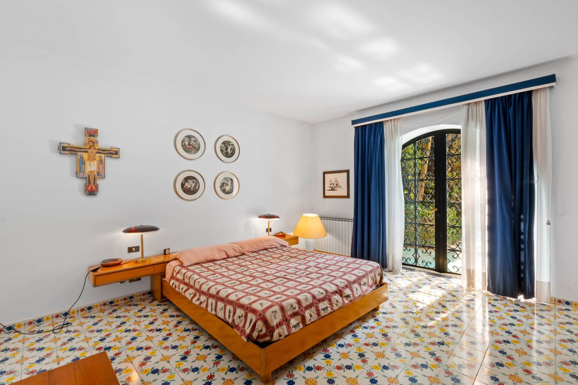 Il piano terra si apre su un maestoso salone triplo, illuminato da grandi finestre ad arco in stile francese che si affacciano sul giardino e sui terrazzi, decorati con pregiate maioliche artigianali.