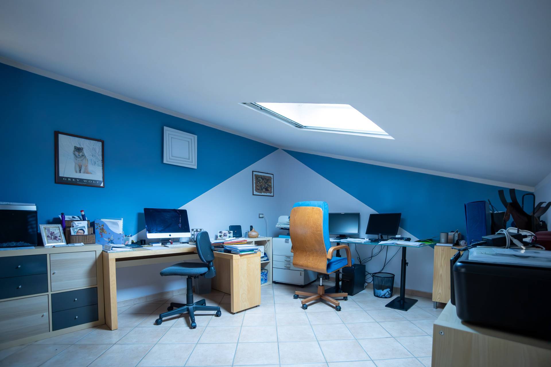 La villa si compone di ingresso su salone con camino a ventilazione, comoda cucina ed area dispensa, disimpegno con camera da letto e bagno; al piano superiore, mansardato molto alto, troviamo due grandi camere da letto, una con balcone e l'altra con il velux, una zona studio/ufficio ed una sala tv/relax, anch'essa con il secondo balcone, la metratura talmente ampia che si potrebbero ricavare quattro camere da letto, o renderla perfetta per due nuclei familiari, considerando che al livello mansarda ci sono gli attacchi per la cucina, un grande bagno con doccia, completa il piano.