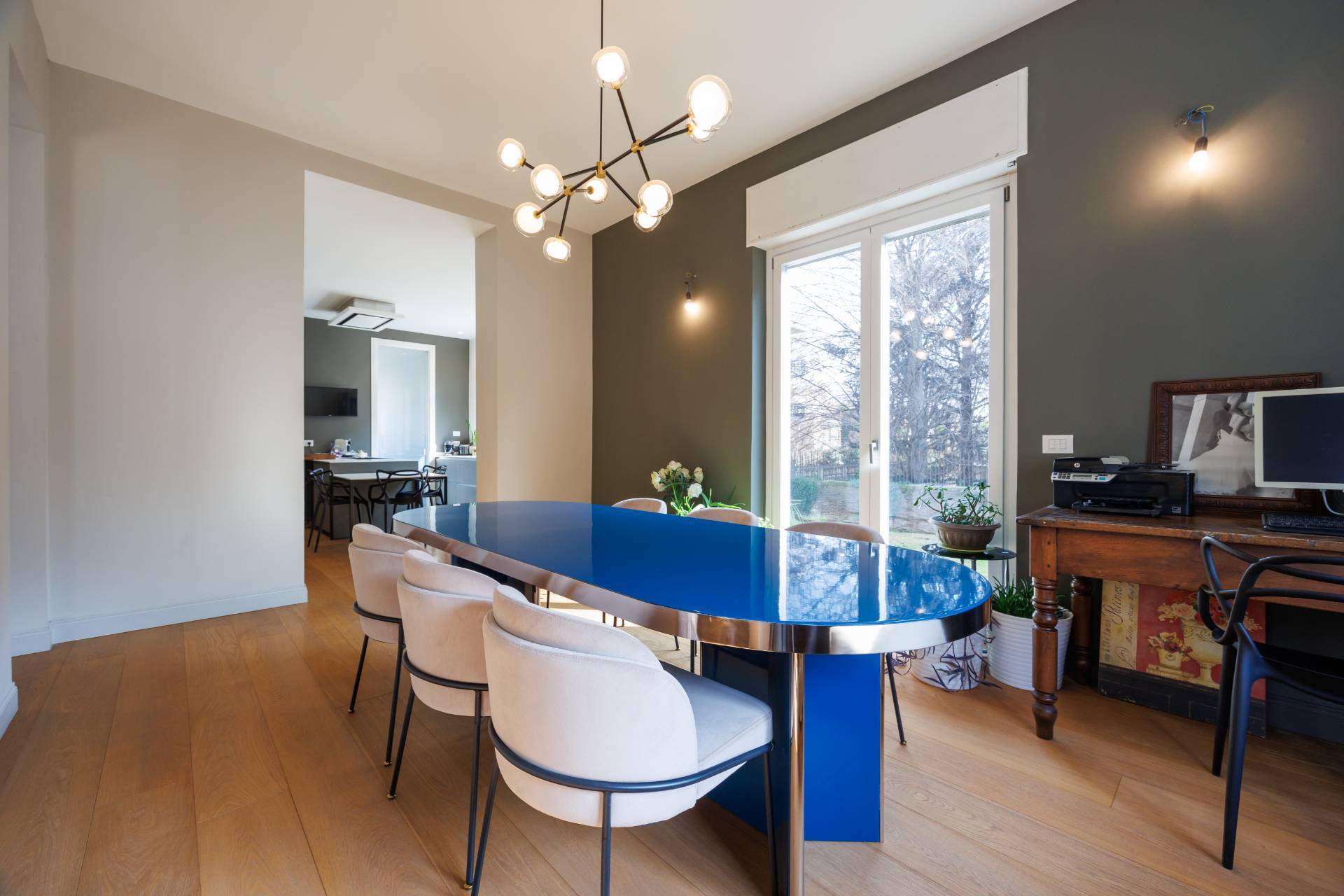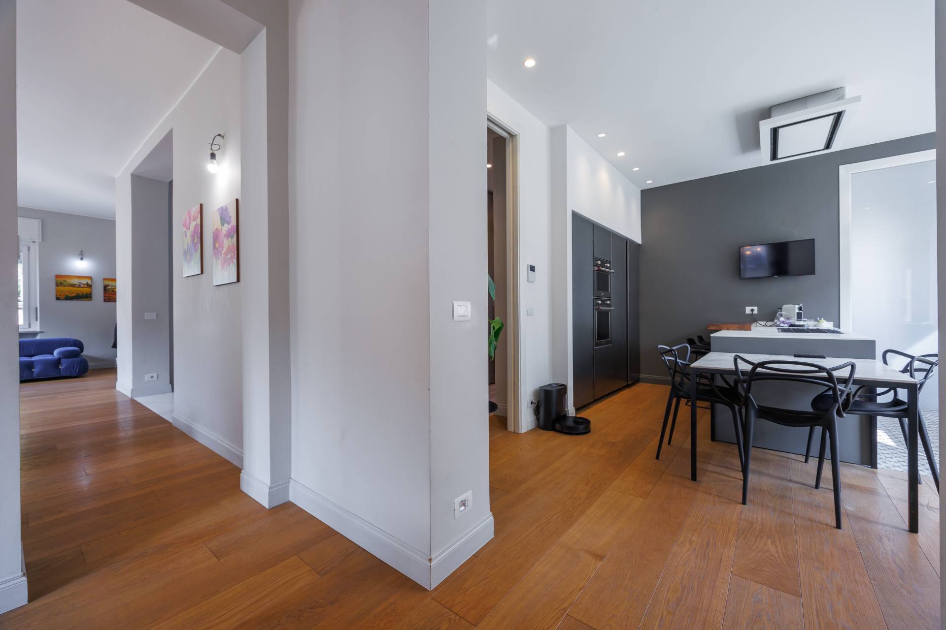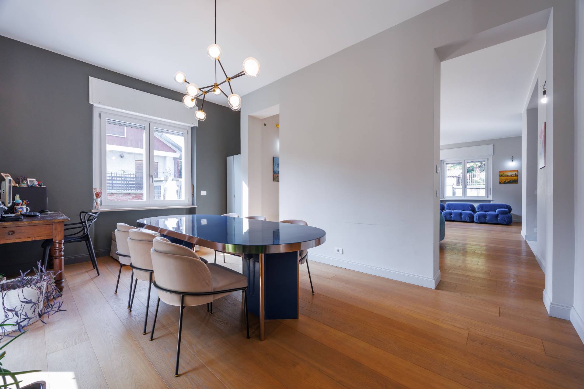 Limmobile dotato di serramenti in legno-alluminio, tapparelle elettriche, zanzariere, riscaldamento a pavimento, pannelli solari e impianto fotovoltaico.