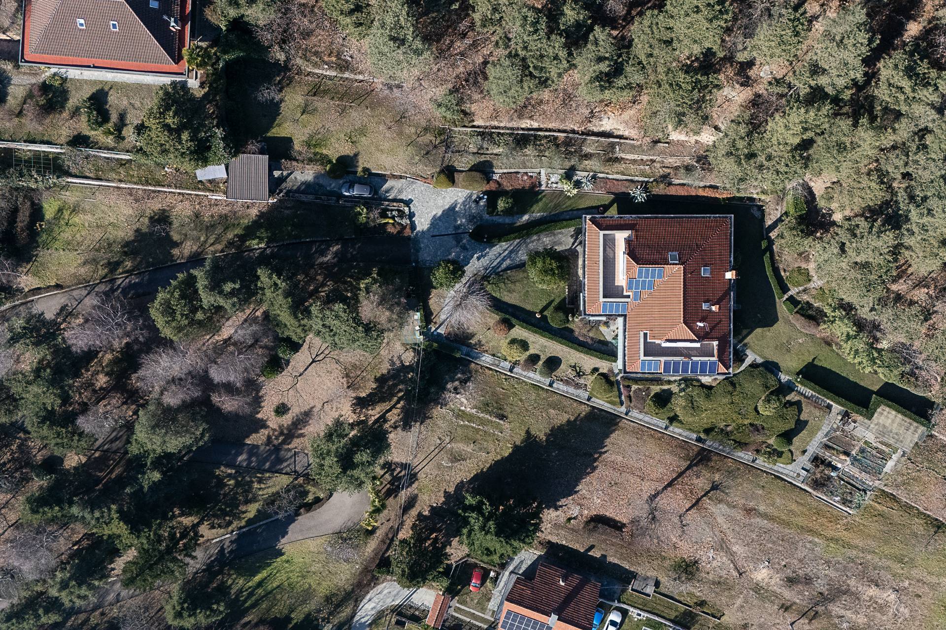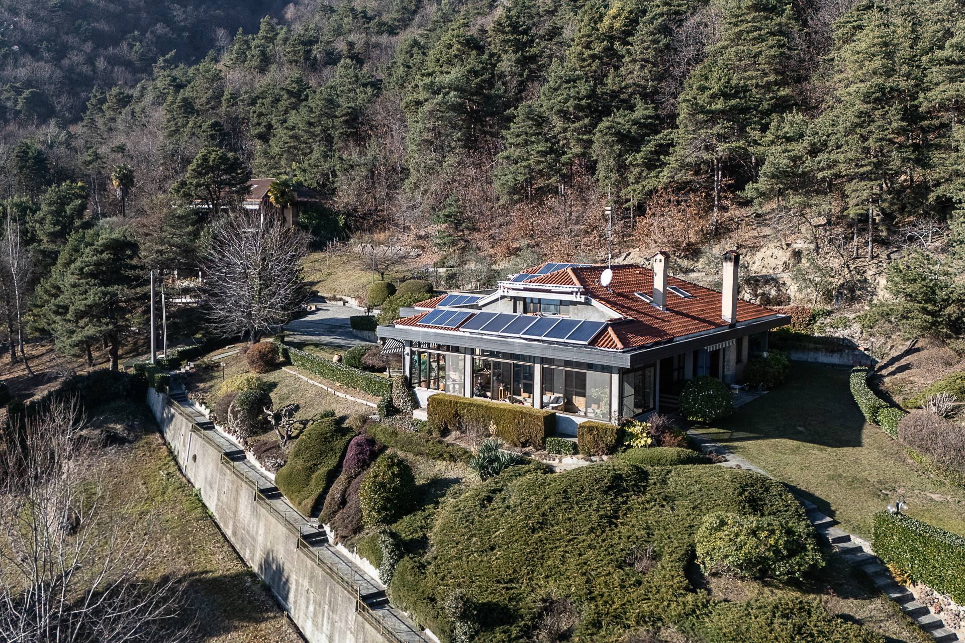 La preziosit dei materiali impiegati e le grandi e numerose aperture e vetrate conferisco alla propriet un aspetto molto accogliente ed estremamente luminoso Completa la propriet una tettoia di mq 22 posta nel giardino.