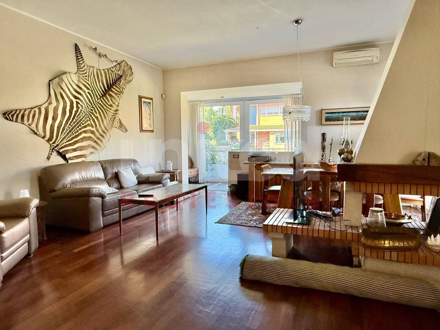 Isola 25, nel centro di Casalpalocco, a pochi passi dal centro commerciale "Le Terrazze", proponiamo la vendita di una porzione di villa quadrifamiliare di circa 250 mq su 4 livelli, composta al piano terra da salone doppio con camino, grande cucina abitabile, ed un bagno di cortesia; salendo al primo piano, nella zona notte troviamo una camera padronale con bagno privato, altre 2 camere da letto ed un secondo bagno.