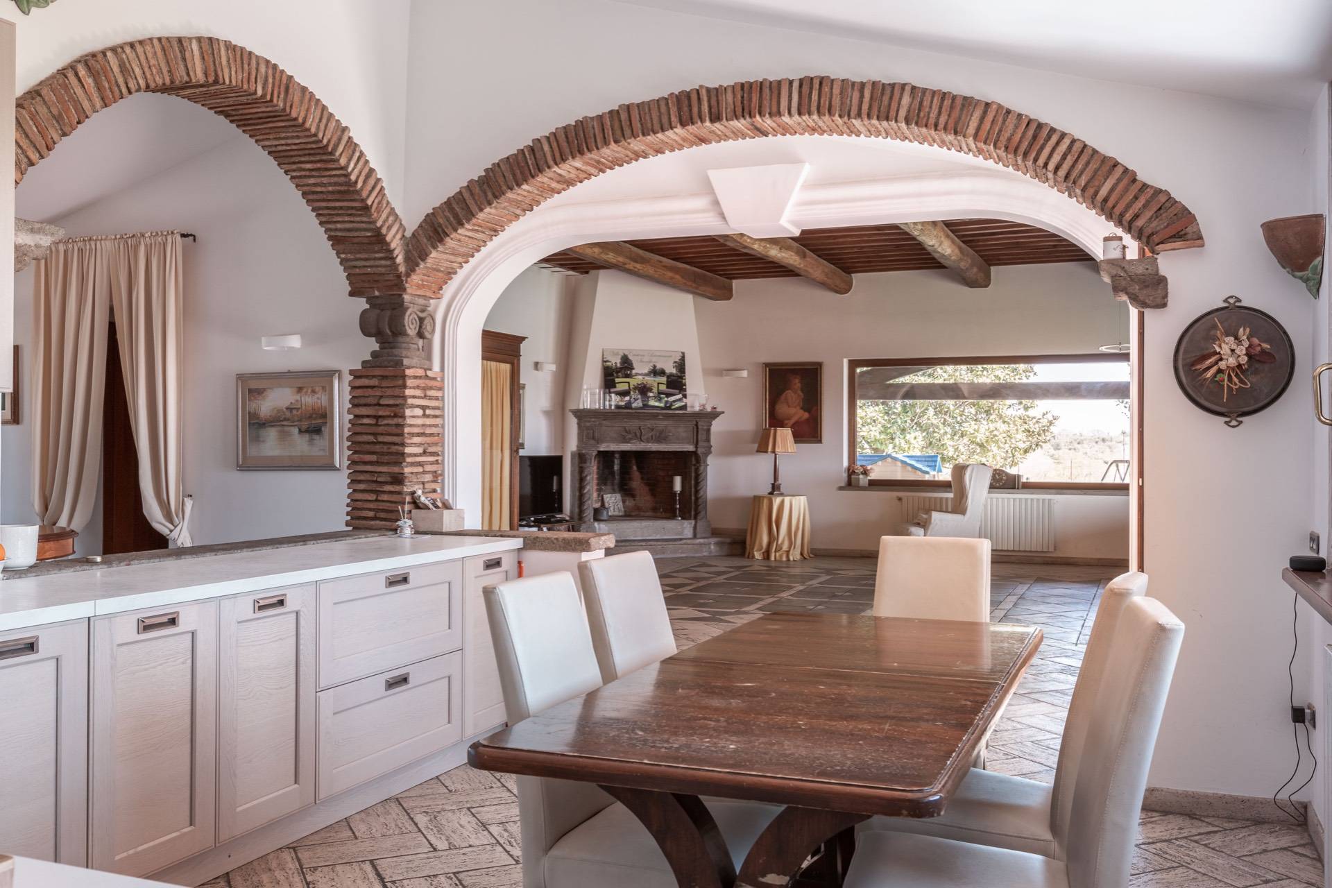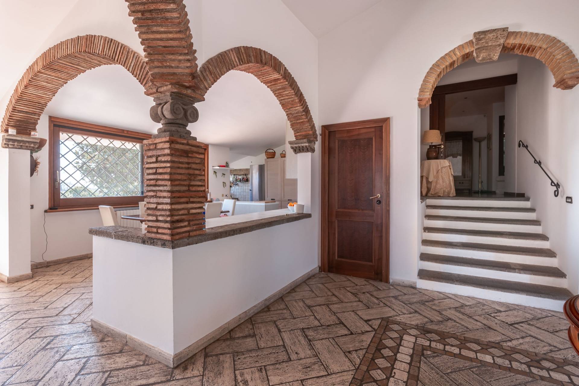 Al piano terra la villa si accoglie con un grande salone, una comoda cucina aperta sulla sala, ed uno studio con bagno; grazie a pochi gradini possiamo raggiungere la zona notte composta da 3 camere 3 bagni.