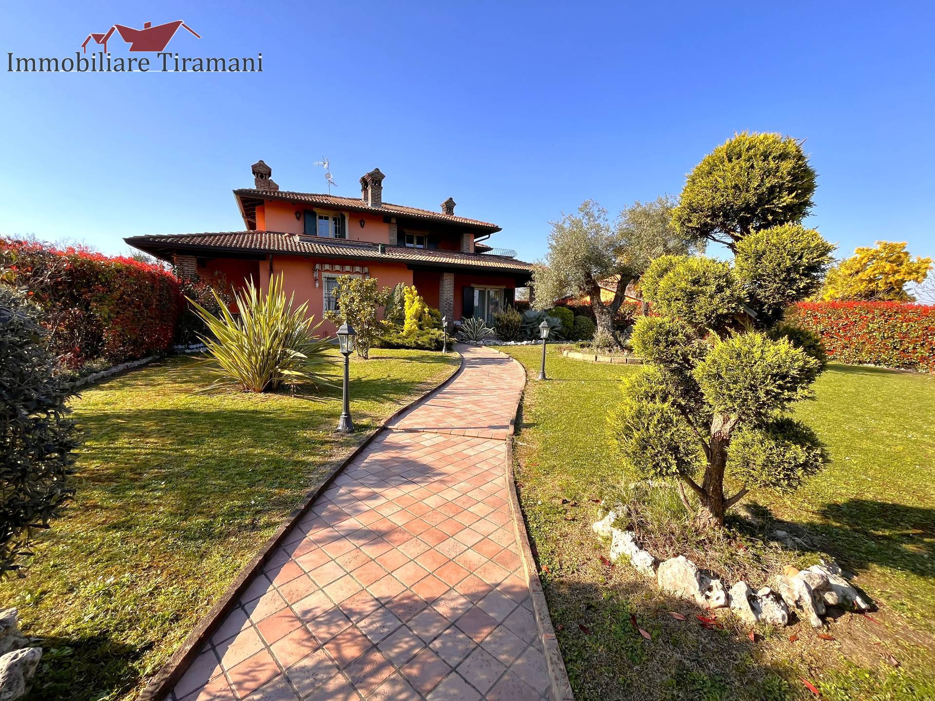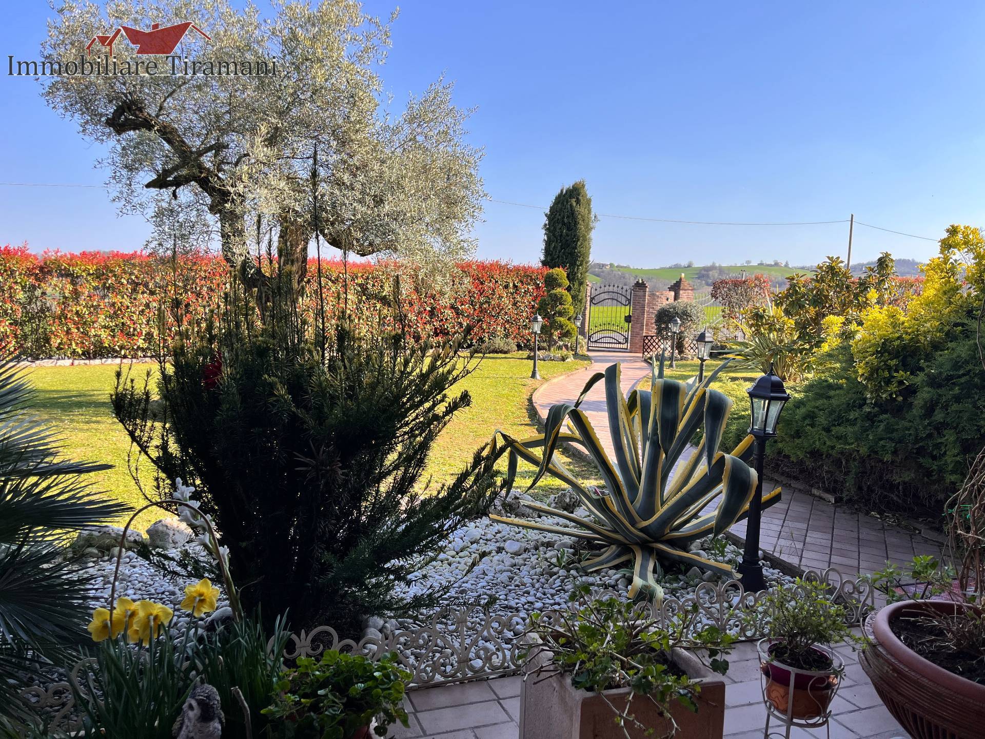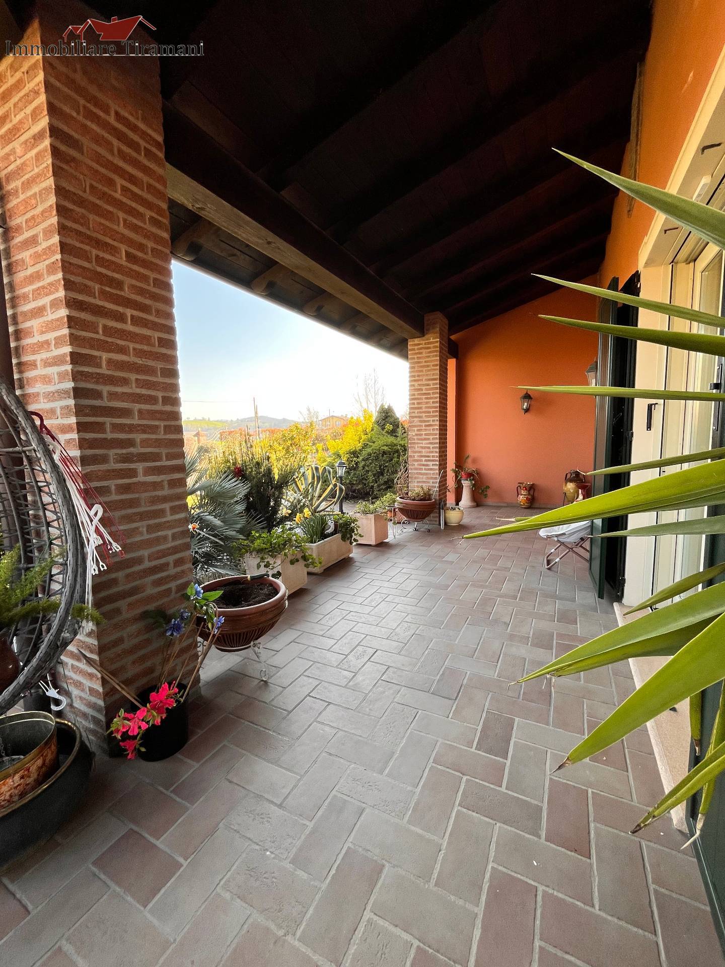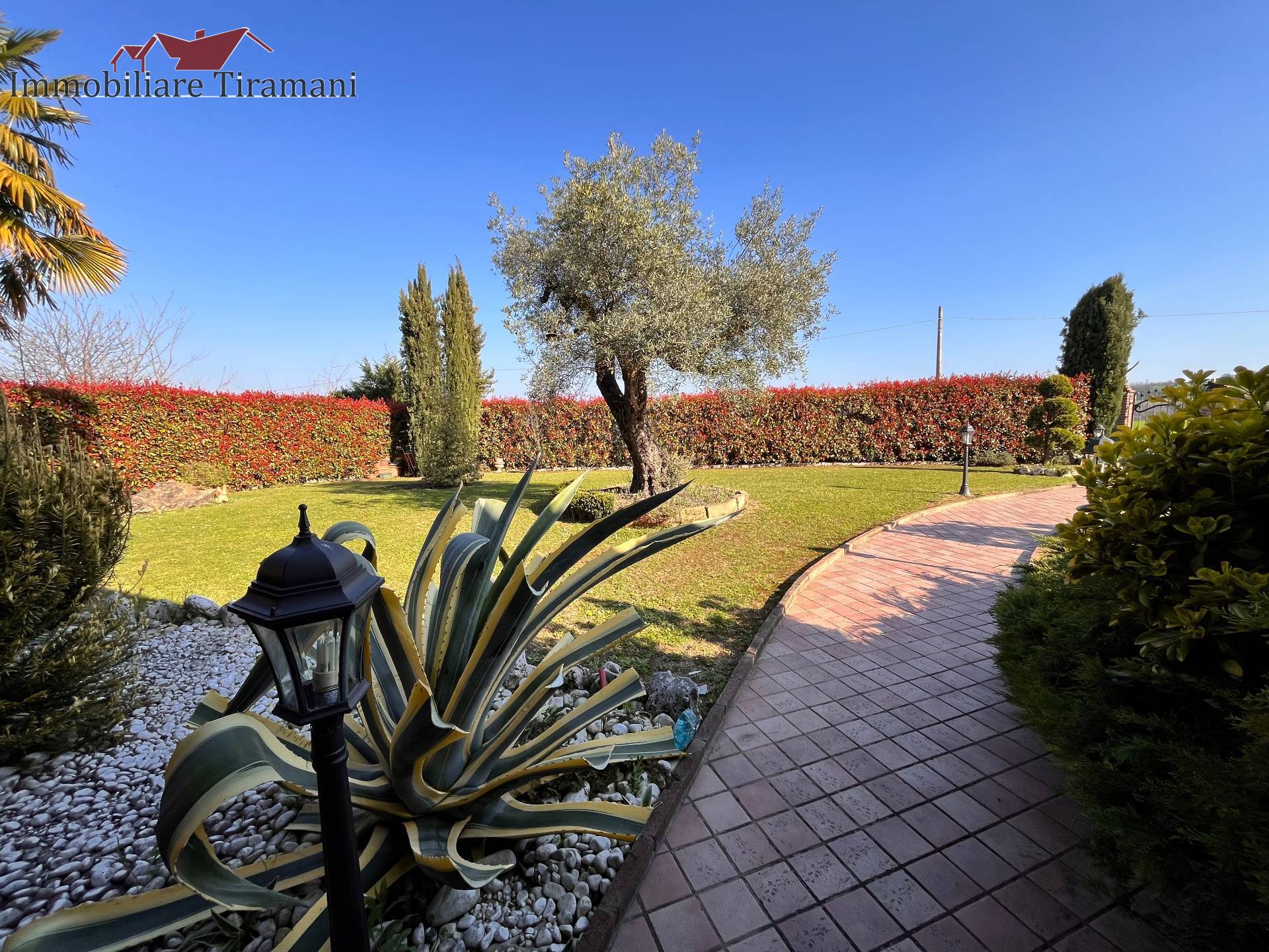 Circondata da uno splendido giardino completamente recintato e piantumato, tramite un portico accediamo alla parte abitativa con stanze luminose ed ampie.
