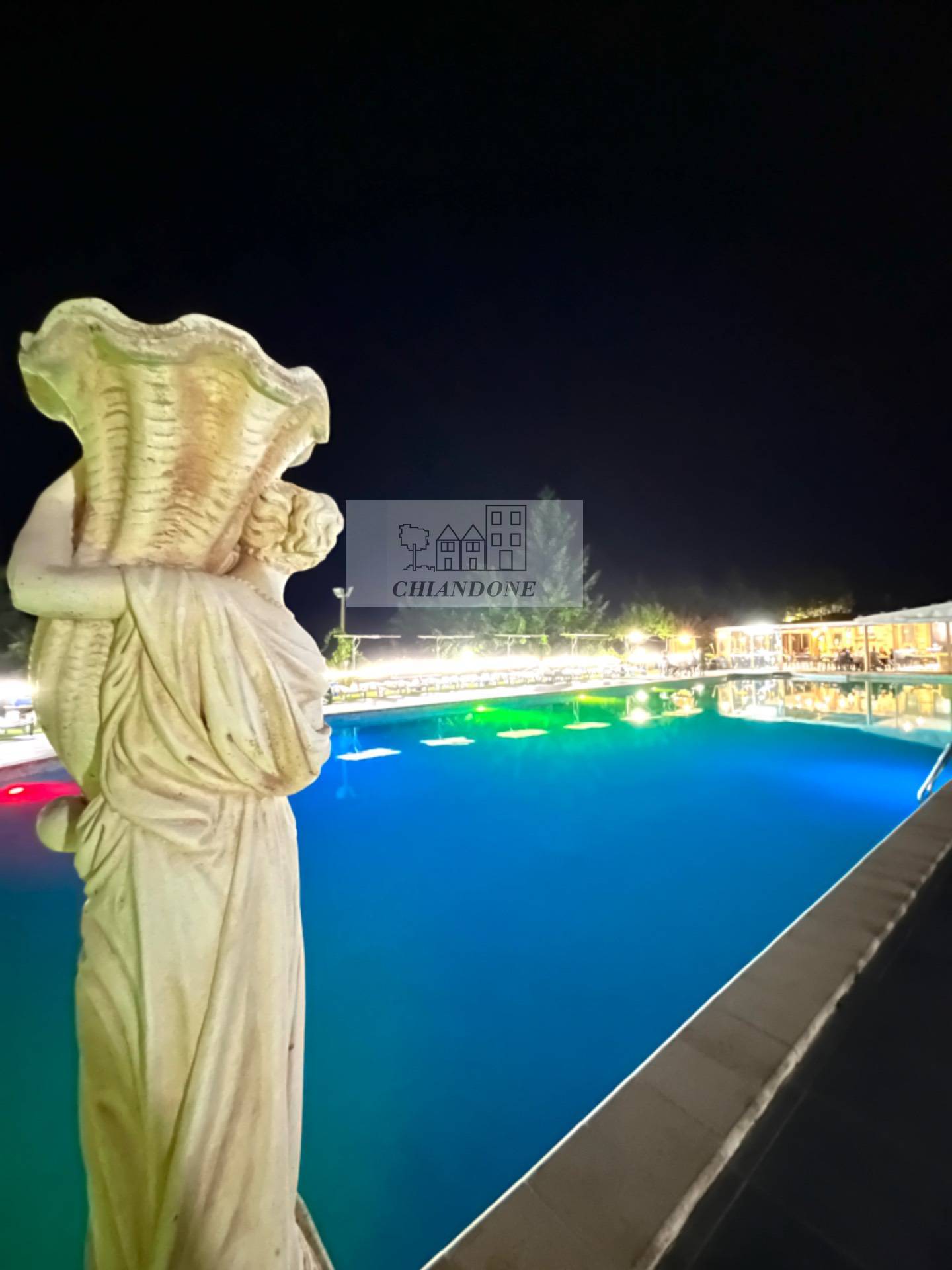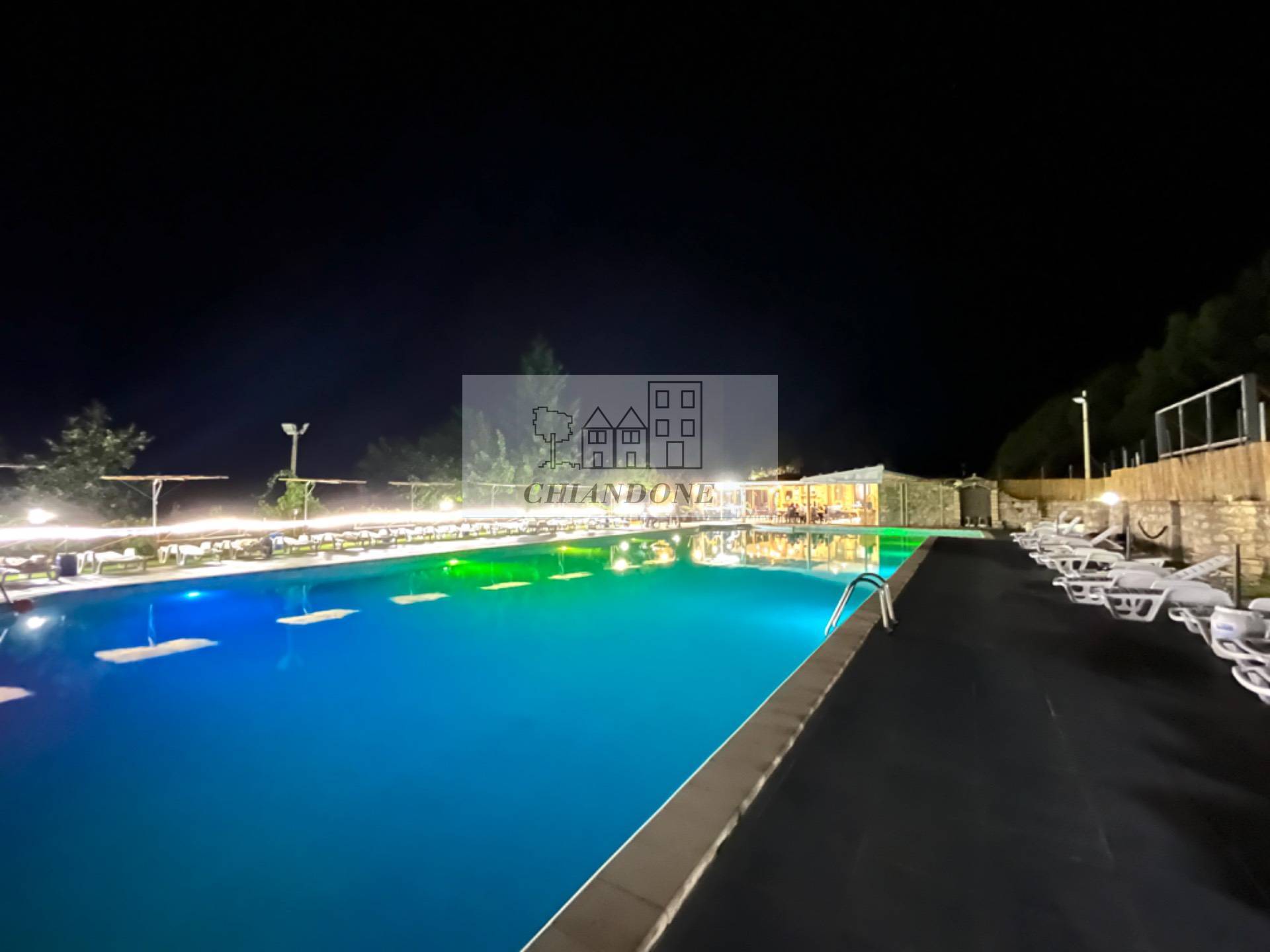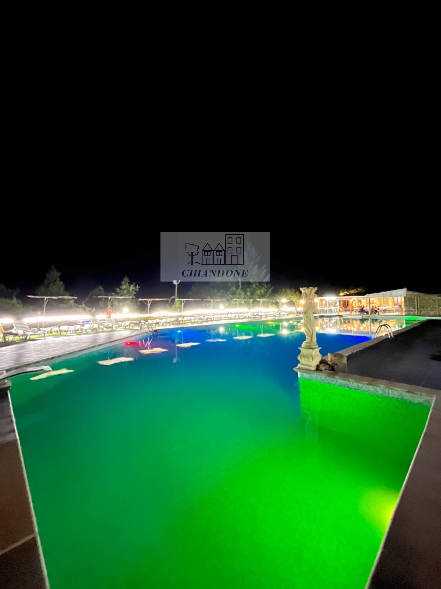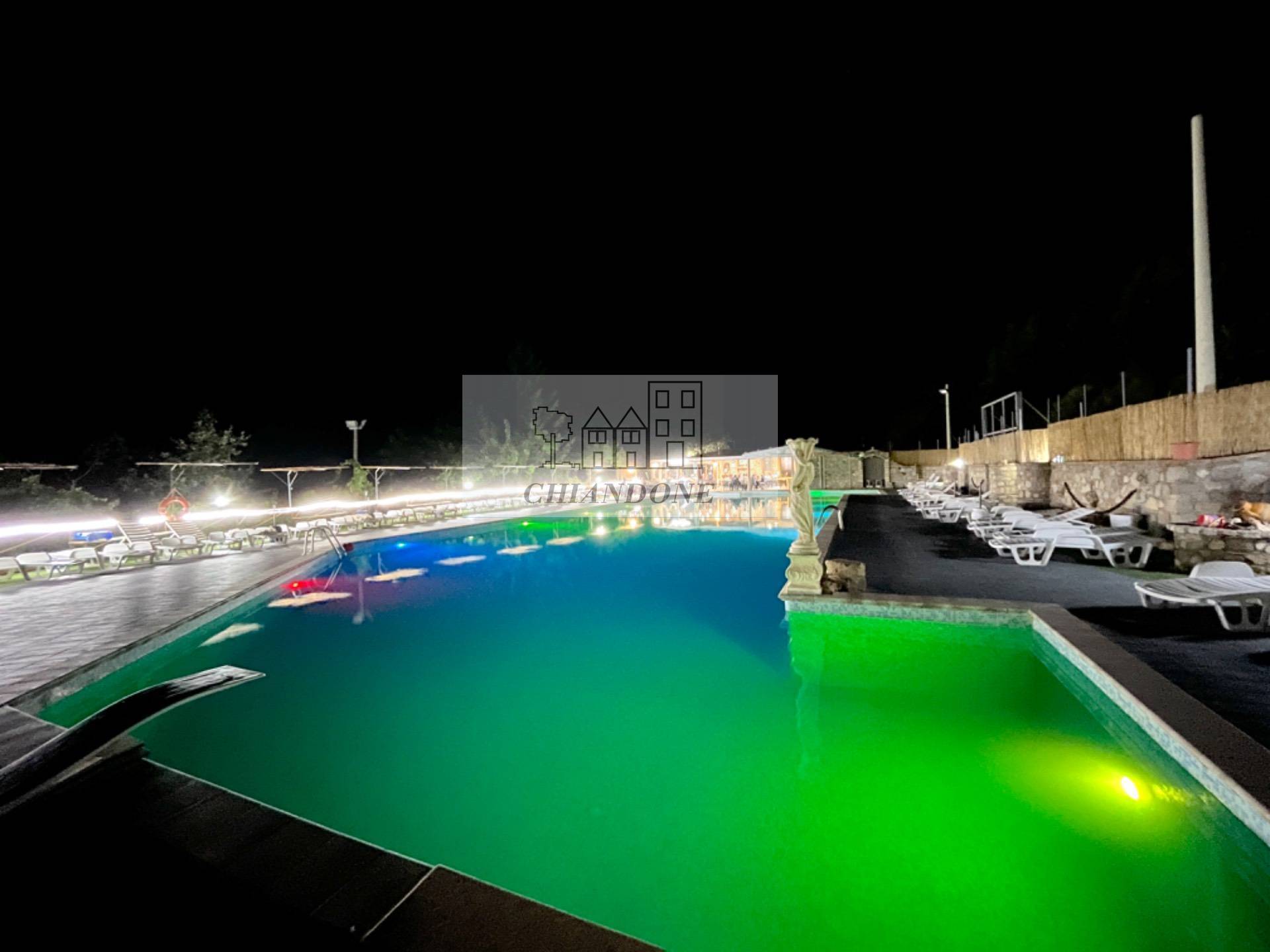 La sera pura magia: tantissime luci colorate illuminano completamente la piscina dall'interno, creando insieme ai giochi di luci esterne, un'atmosfera da sogno..***.*******.** cos, a bordo piscina, su di un lettino a guardare le stelle la notte di San Lorenzo..***.*******.** degna di un film! Il terreno venduto insieme all'unit abitativa di circa 8500mq.