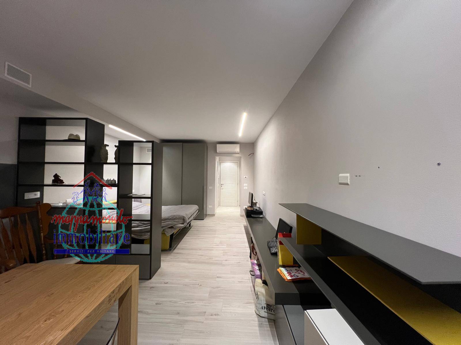 La disposizione degli spazi ottimale, cosi suddivisi: piano terra: ingresso, garage doppio automatizzato, lavanderia, ripostiglio, vano tecnico/cantina; piano primo: ampio soggiorno con angolo cottura, balcone, camera matrimoniale, ripostiglio e bagno con doccia; piano secondo : ampio soggiorno con angolo cottura, balcone, camera/studio, bagno con doccia e sanitari sospesi e scala arredo; piano terzo: ampio bagno con vasca e doccia, 2 camere di cui una con balcone.