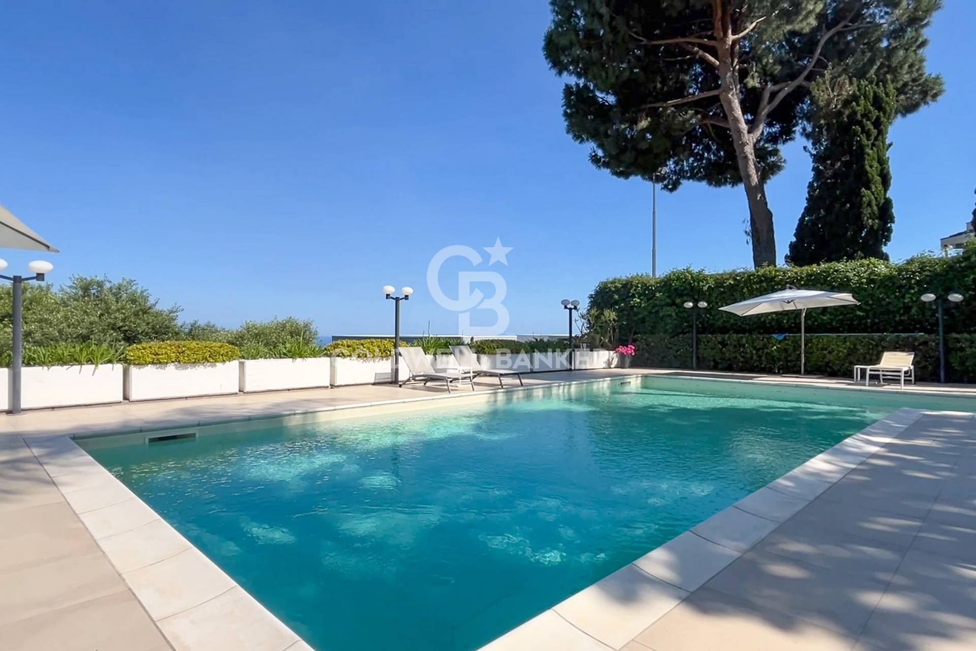La camera padronale vanta una cabina armadio riservata, un bagno padronale con vasca idromassaggio e doccia, e un balcone terrazzato che regala un risveglio con vista sul blu del mare. Zona Notte e Studio: Al piano rialzato si trovano due ampie camere da letto, ciascuna servita da bagno privato, uno studio ideale per il professionista e una lavanderia funzionale.