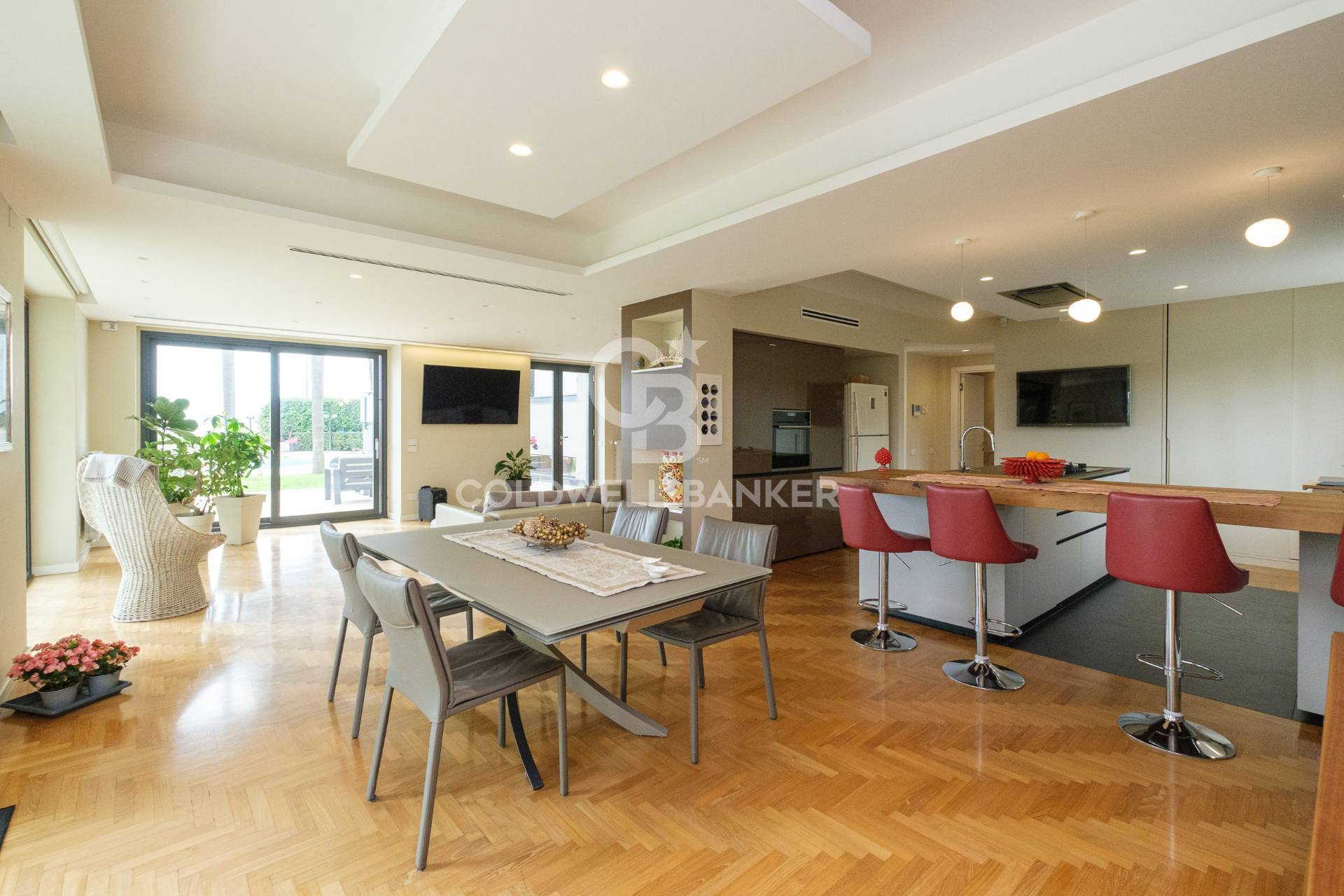 La villa non solo bellezza, ma un esempio di efficienza ingegneristica: Indipendenza Energetica: Impianto fotovoltaico da 8,5 kW. Climatizzazione: Sistema canalizzato Daikin con pompe di calore e chiller per acqua sanitaria.