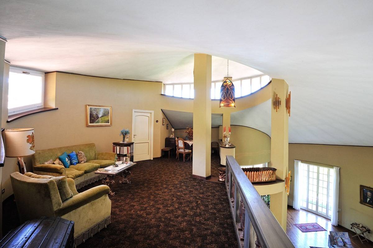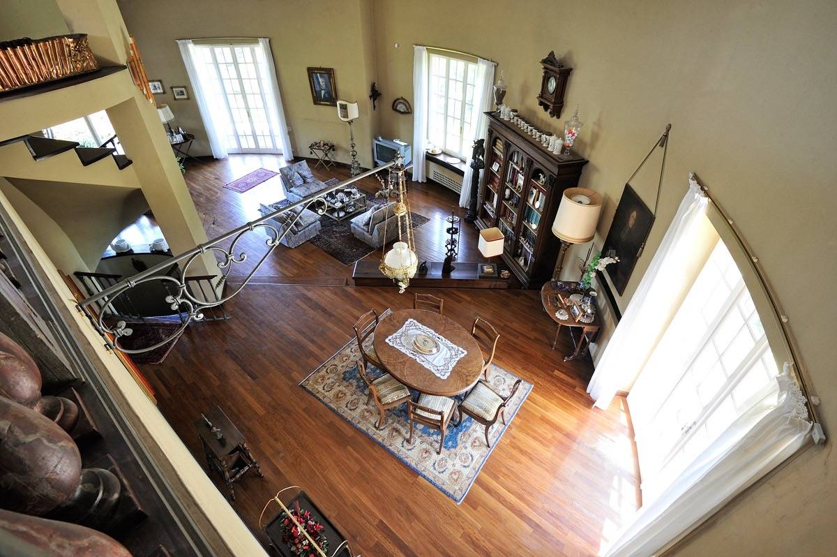Il piano primo mansardato valorizzato da una balconata affacciata sul salone sottostante e ospita ulteriori camere da letto oltre a un ampio studio.