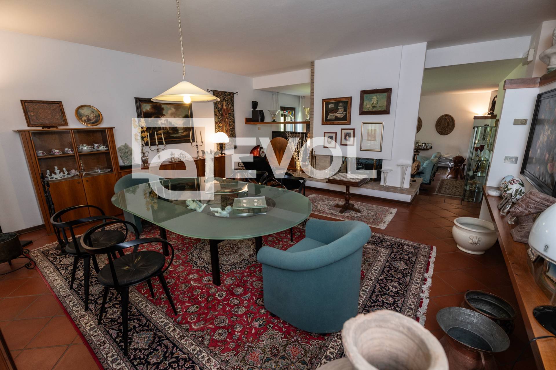 La Villa in questo momento suddivisa in due appartamenti e si sviluppa su due livelli, al piano terra abbiamo le zone giorno e notte, al piano seminterrato la taverna, alcuni locali e i tre garage, con quattro posti auto. L'appartamento padronale si sviluppa al piano terra, dove dal atrio accediamo al grande salotto, la sala da pranzo adiacente e cos la cucina, nelle la zona notte troviamo le tre camere da letto matrimoniali, i tre bagni e il ripostiglio, inoltre abbiamo due portici, uno collegato alla sala da pranzo e alla cucine, il secondo collegato alla salotto.