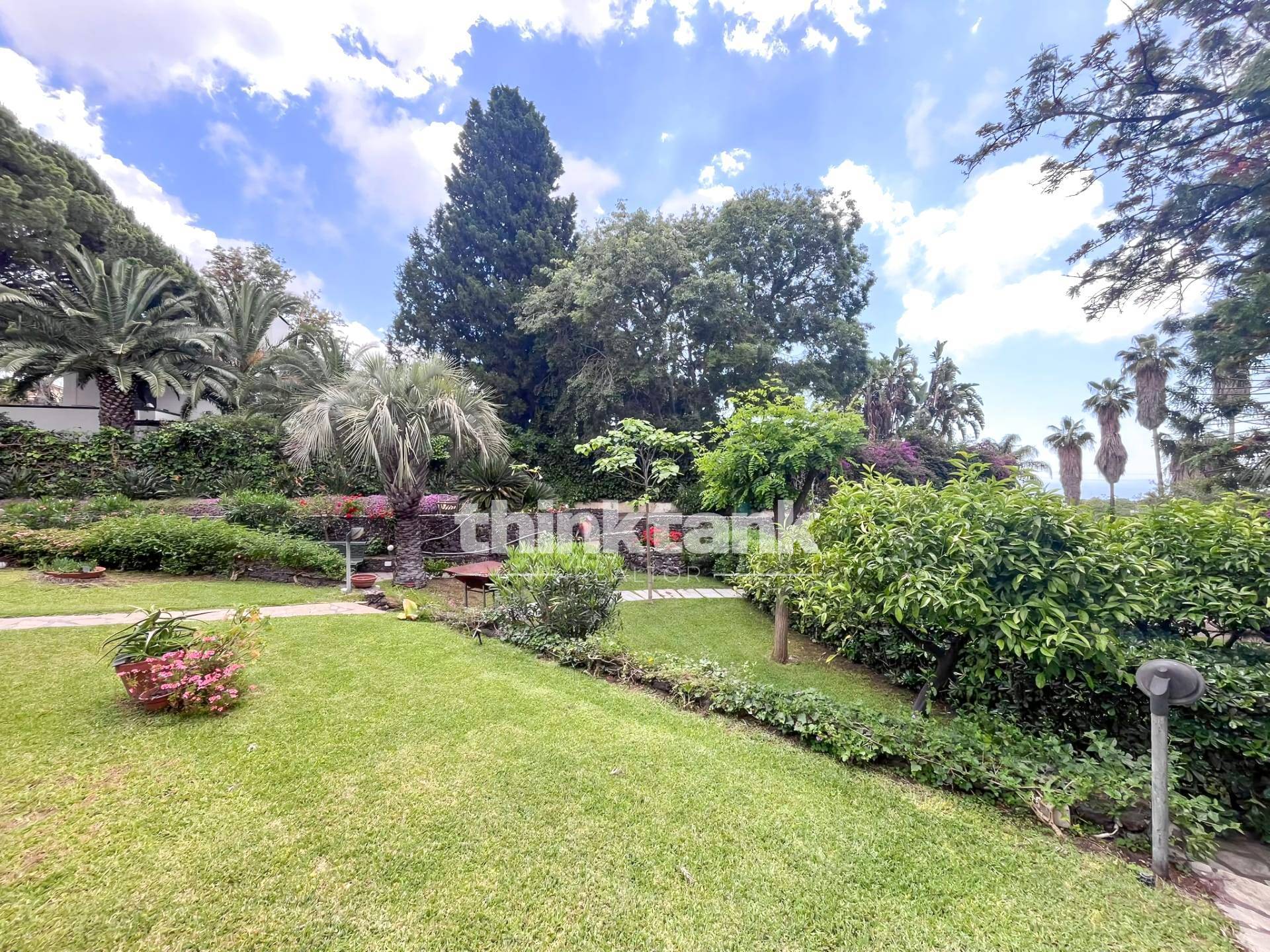 Piano Terra Ingresso scenografico con tetto in sughero Ampio salone, cucina e sala da pranzo Guardaroba e disimpegno con accesso a palestra privata Camera da letto padronale con bagno en suite e cabina armadio Terrazza panoramica con vista libera Garage di 38 mq con accesso comodo e sicuro Finiture di pregio: parquet in legno iroko massello con posa trasversale, porte in radica di mogano Piano Cantina Ampia taverna di 40 mq Stireria, lavanderia e stanza di servizio con bagno Ingresso indipendente Appartamento Indipendente (110 mq) Ideale per ospiti o personale di servizio, composto da: Salone Tre camere da letto Tre bagni Lavanderia e ripostiglio Soppalco Ufficio privato con affaccio interno, perfetto per smart working Videocitofono Dotazioni e Comfort Classe Energetica A2 Riscaldamento a pavimento e aria condizionata centralizzata Due impianti fotovoltaici da 8 kW con batterie di accumulo Impianto di allarme 2858, videocitofono e cassaforte Cappotto termico e coibentazione del tetto Infissi a taglio termico Impianti autonomi (gas + elettrico) Messa a terra certificata Serbatoio dacqua da 1.000 litri Irrigazione automatica con costi di manutenzione ridotti (150 ?/mese) Spazi Esterni Posti auto interni ed esterni Giardino curato e rigoglioso, arricchito da piante tropicali, siepi e fioriture stagionali Camminamenti in pietra, area barbecue, camino e forno a legna Totale privacy e ambienti perfetti per relax o ricevimento ospiti Posizione Situata in zona residenziale esclusiva, la villa offre una posizione strategica: riservata ma vicina ai principali servizi, al centro di Catania e alle vie di collegamento principali.
