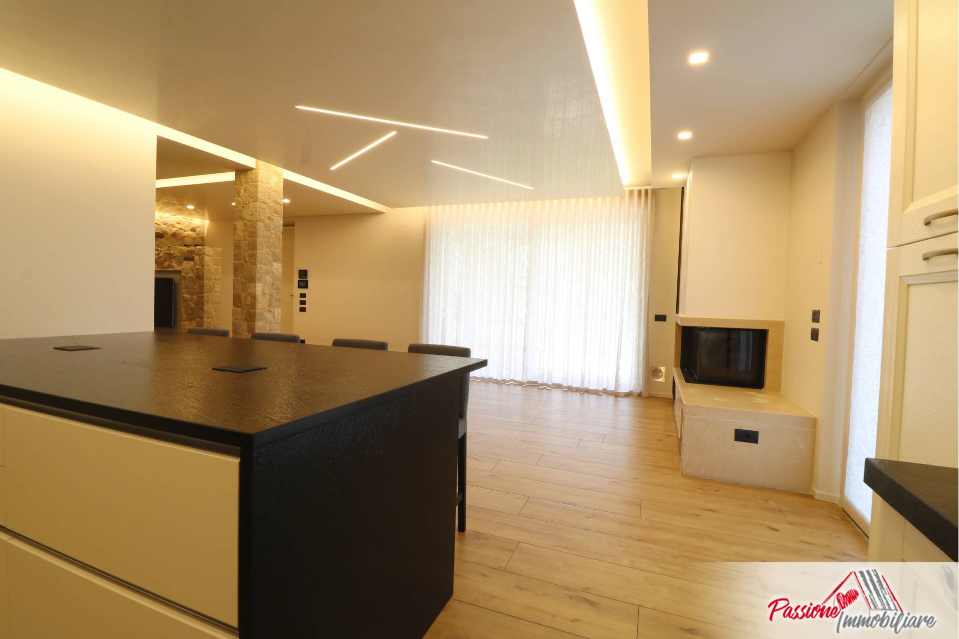 Al livello superiore la zona notte include quattro camere matrimoniali, di cui una padronale con bagno privato e cabina armadio, mentre una delle altre tre camere ha accesso al terrazzo cos come il locale lavanderia; sempre al piano, due ulteriori servizi finestrati L'appartamento pi piccolo, con esposizione a sud, perfetto per parenti o ospiti: composto da un soggiorno con angolo cottura di circa 35 mq, due camere da letto (una singola e una matrimoniale) e due bagni finestrati, offre comfort e privacy Il piano interrato accessibile da entrambe le abitazioni e comprende una spaziosa taverna, una centrale termica e un bagno; la taverna predisposta per una cucina e un camino.
