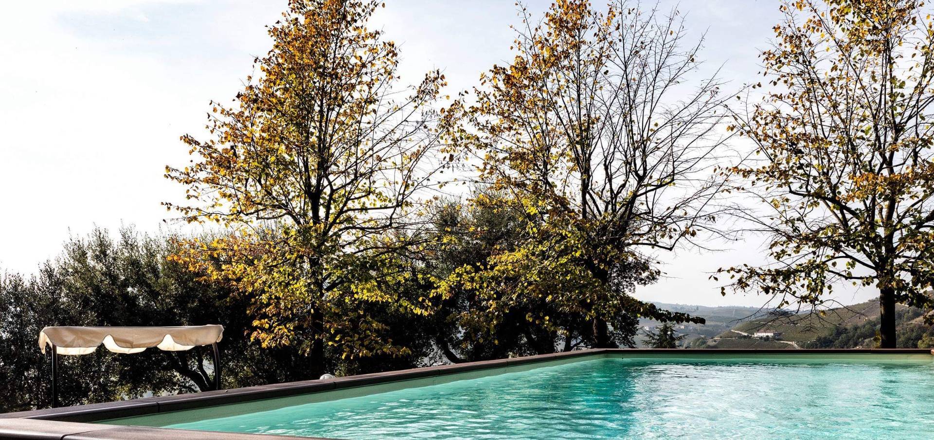 La villa circondata da un vasto parco con magnifiche piante e cespugli che contribuiscono a rendere lo spazio riservato e piacevole, ma che non impediscono di spaziare con lo sguardo sulle Langhe.