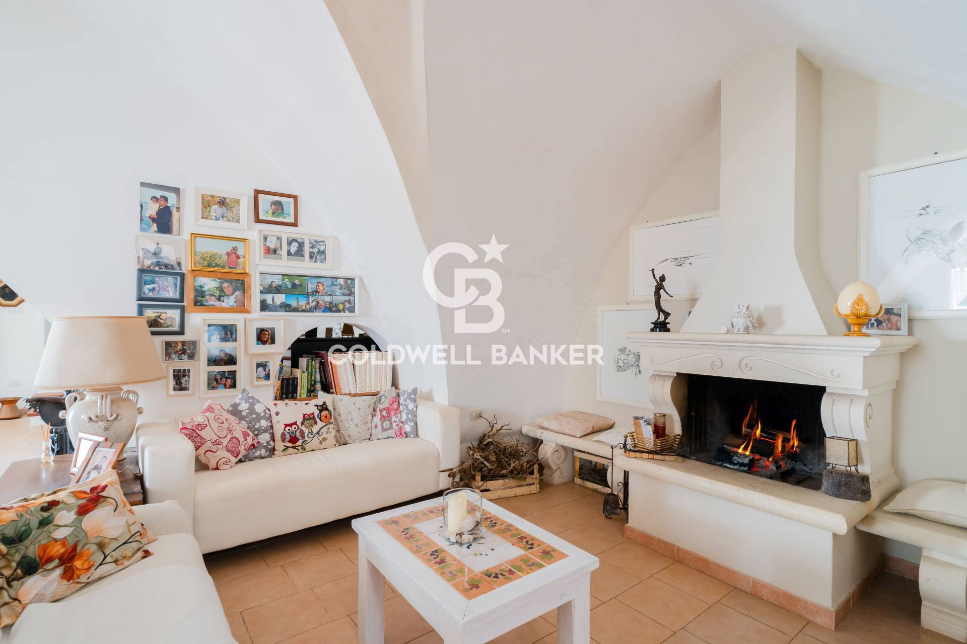 Di fronte, sottoposto di pochi gradini, ci si immerge nel cuore pulsante della casa: un living straordinariamente ampio, caratterizzato da imponenti volte a stella e nicchie incastonate nelle pareti, che donano fascino e profondit all'ambiente.
