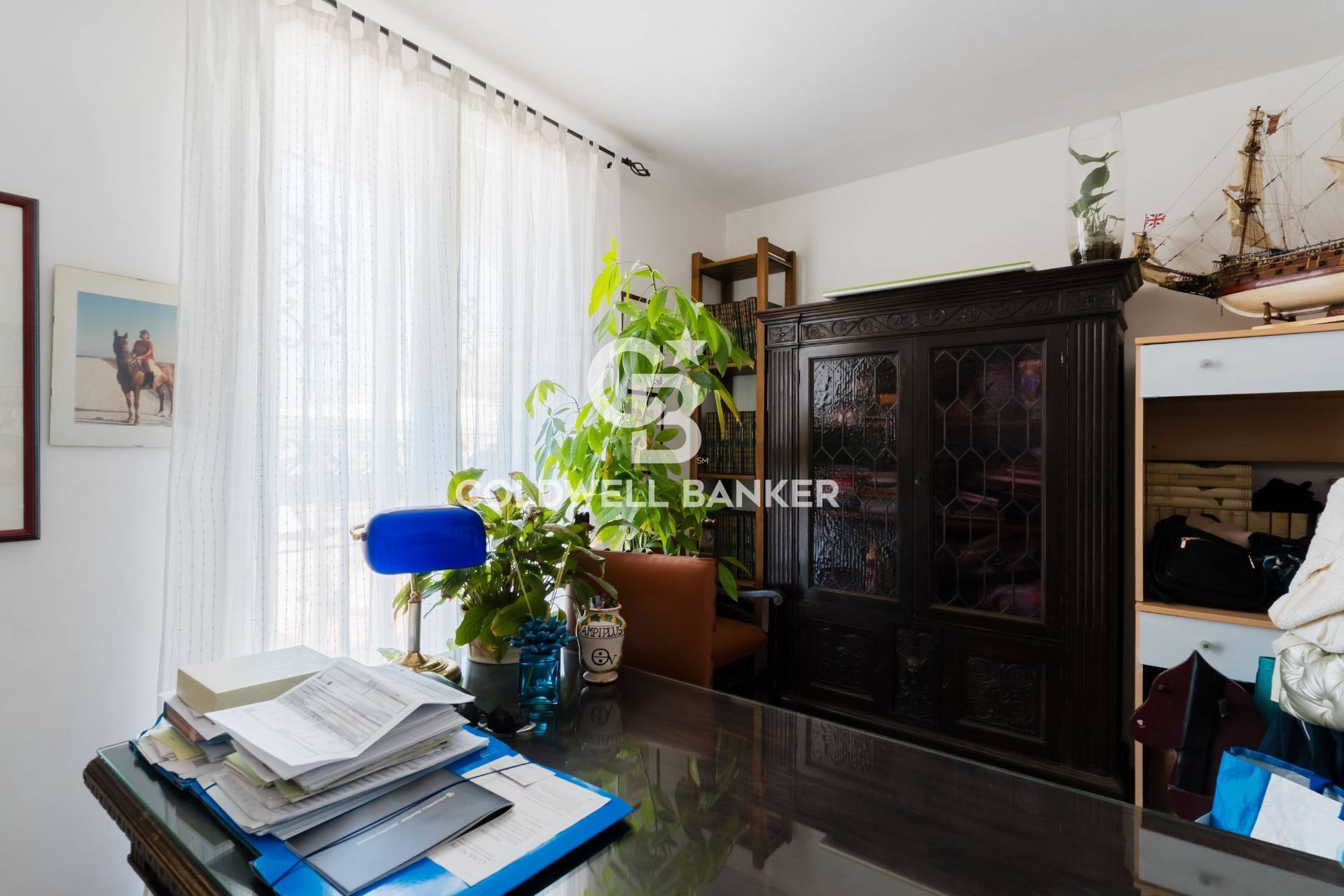 Alla destra, un elegante studio si affaccia su una veranda privata, un angolo intimo e perfetto per chi cerca uno spazio riservato e luminoso.