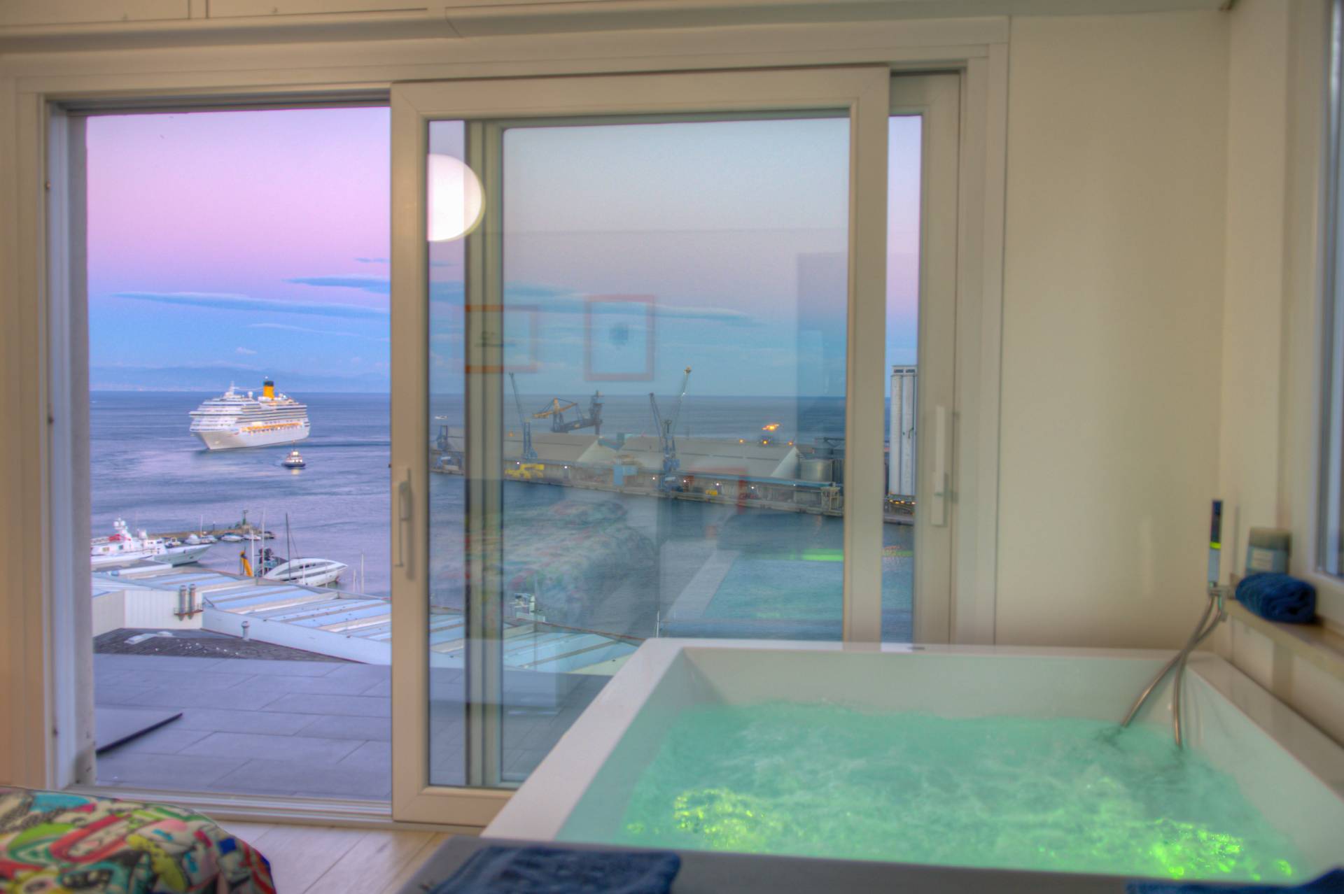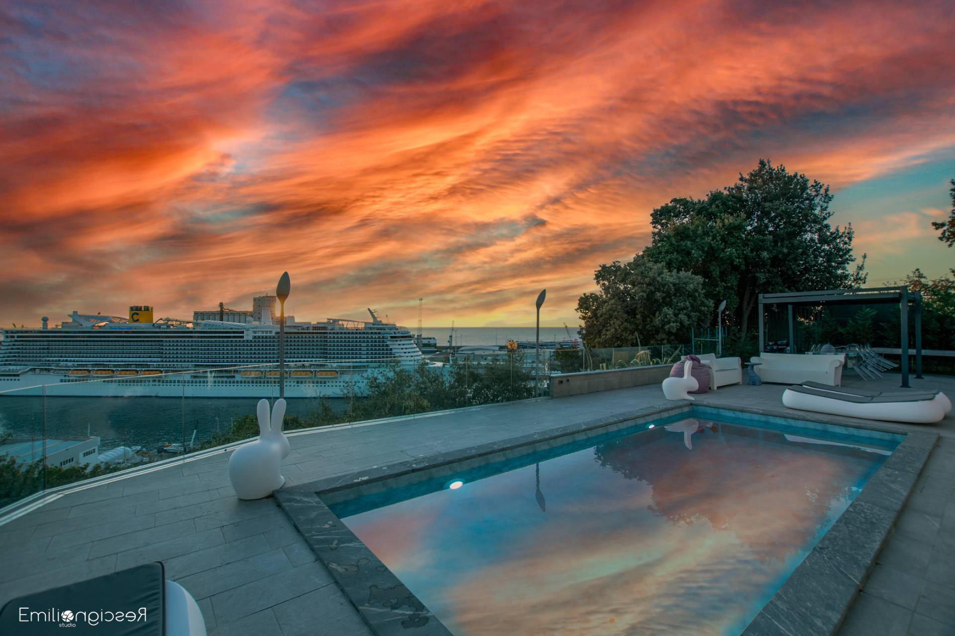 Le finiture sono ricercate, gli spazi ben distribuiti e la posizione strategica permette di vivere con il massimo comfort, tra il mare e la citt. Labitazione si sviluppa su due livelli: al piano terra lampia zona giorno open space accoglie il soggiorno e la sala da pranzo con elegante cucina a vista, moderna e di design, bagno principale, tutto illuminato da grandi vetrate che si affacciano sulla piscina e sul panorama.