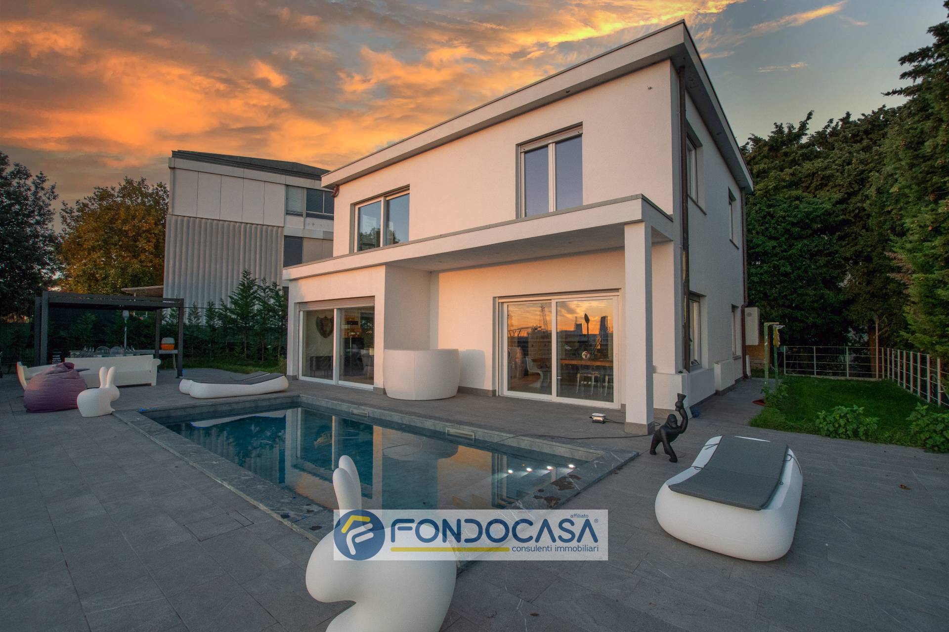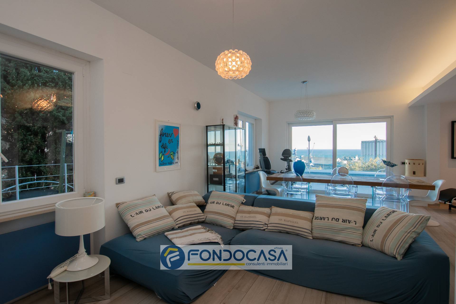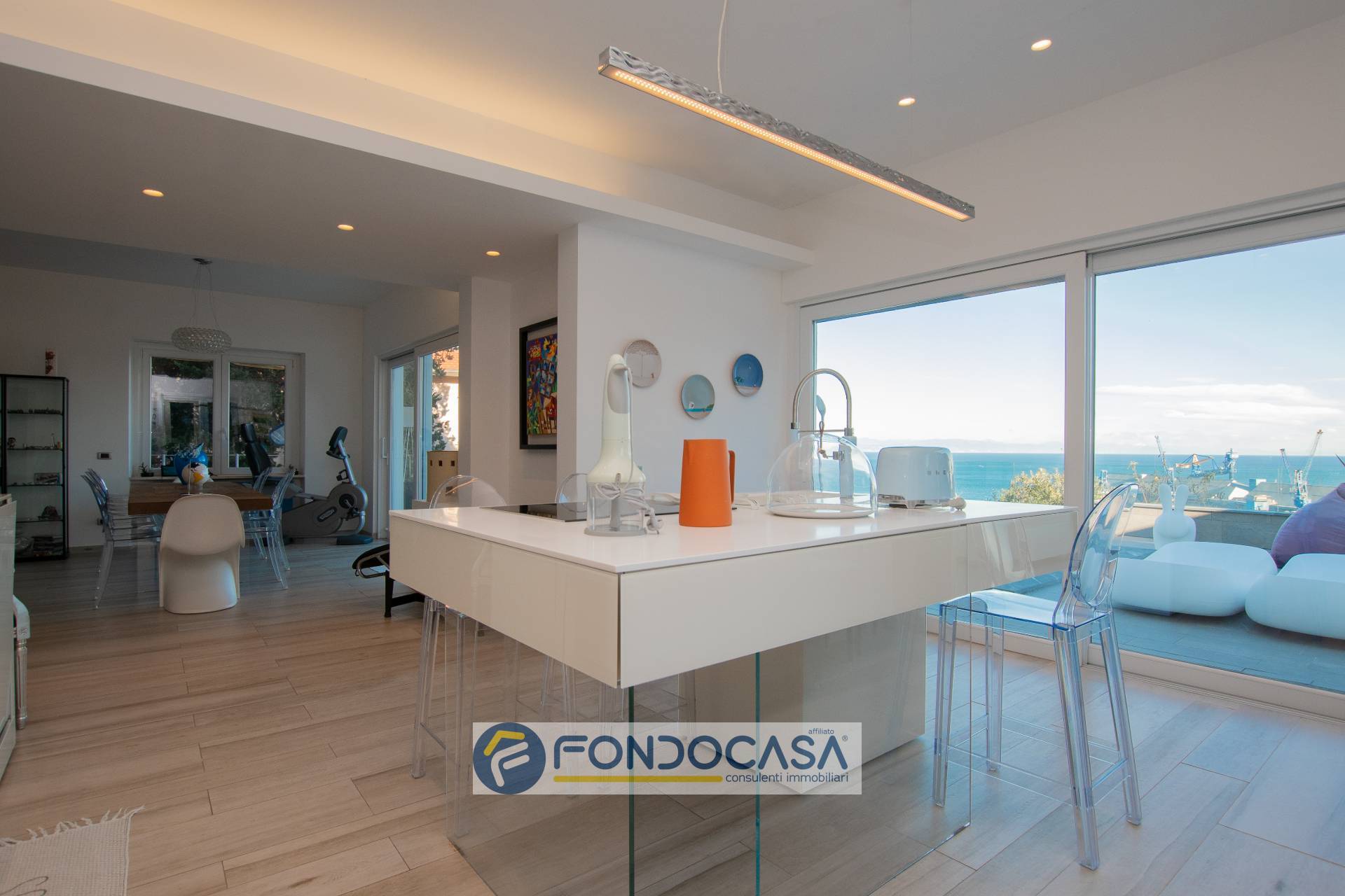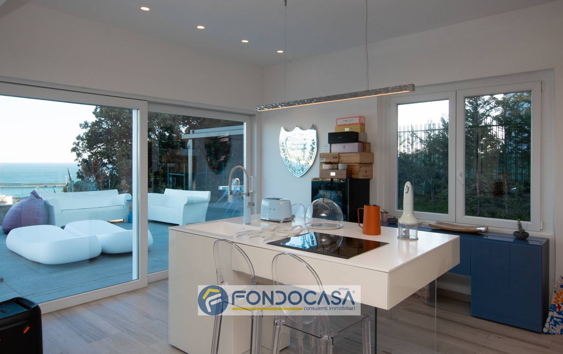 Le finiture sono ricercate, gli spazi ben distribuiti e la posizione strategica permette di vivere con il massimo comfort, tra il mare e la citt. Labitazione si sviluppa su due livelli: al piano terra lampia zona giorno open space accoglie il soggiorno e la sala da pranzo con elegante cucina a vista, moderna e di design, bagno principale, tutto illuminato da grandi vetrate che si affacciano sulla piscina e sul panorama.