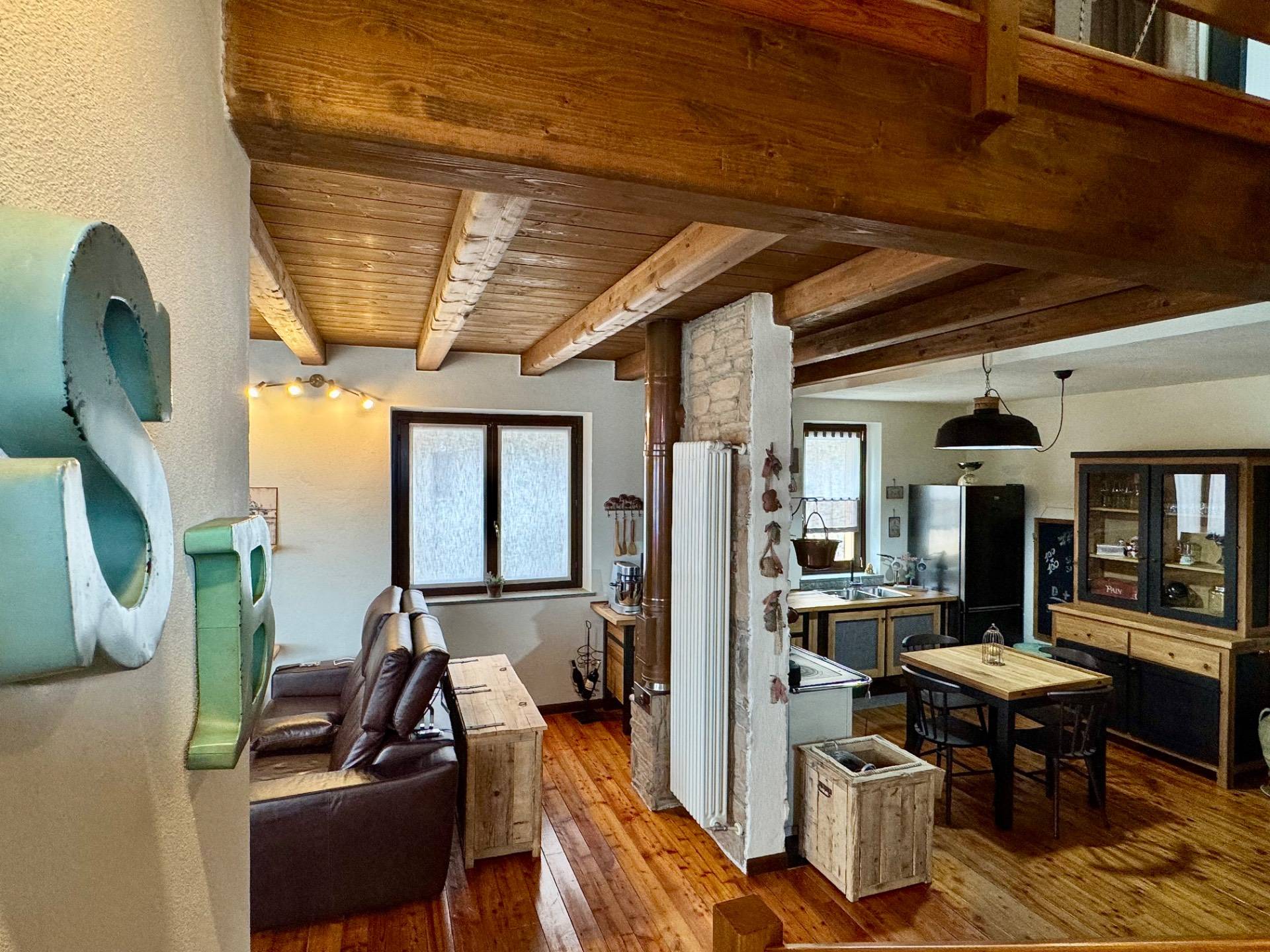 La casa stata costruita nel 2012, con dettagli che la rendono calda e accogliente, spazi ben organizzati che permettono di vivere ogni spazio della casa. Dall'ingresso si entra subito nella zona giorno con cucina a vista arricchita dalla stufa a legna cosiddetta "putag" appoggiata al una parete in pietra che ricordano subito le baite di montagne insieme al parquet che accompagna in tutta la casa, sempre al piano terra c' la camera matrimoniale con bagno, oltre al bagno di servizio del soggiorno.