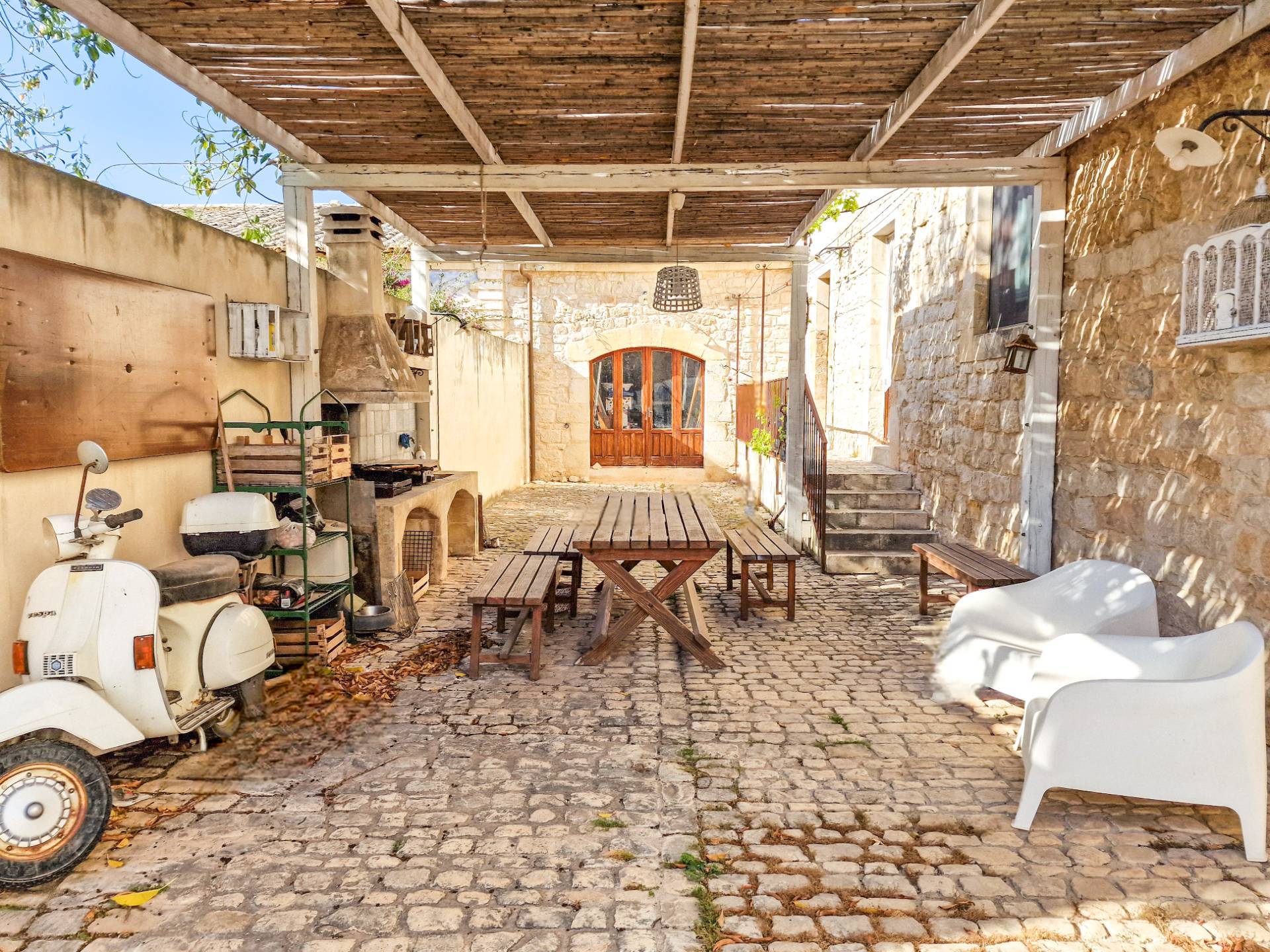 Questa residenza storica ristrutturata su circa 400 metri quadrati, arricchita da cortili in pietra e verande, offre uno spazio abitativo davvero elegante e confortevole.