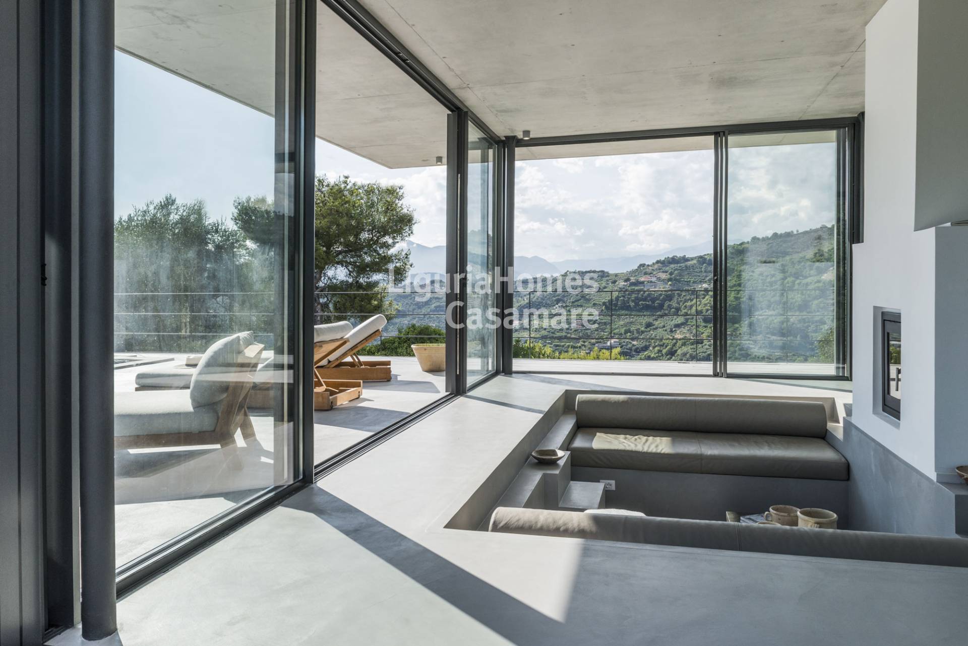 In posizione tranquilla e immersa nel verde, questa villa contemporanea in vendita a Seborga offre design moderno, comfort moderni tra cui il riscaldamento a pavimento e gode di una splendida vista aperta sul Parco di Montenero.