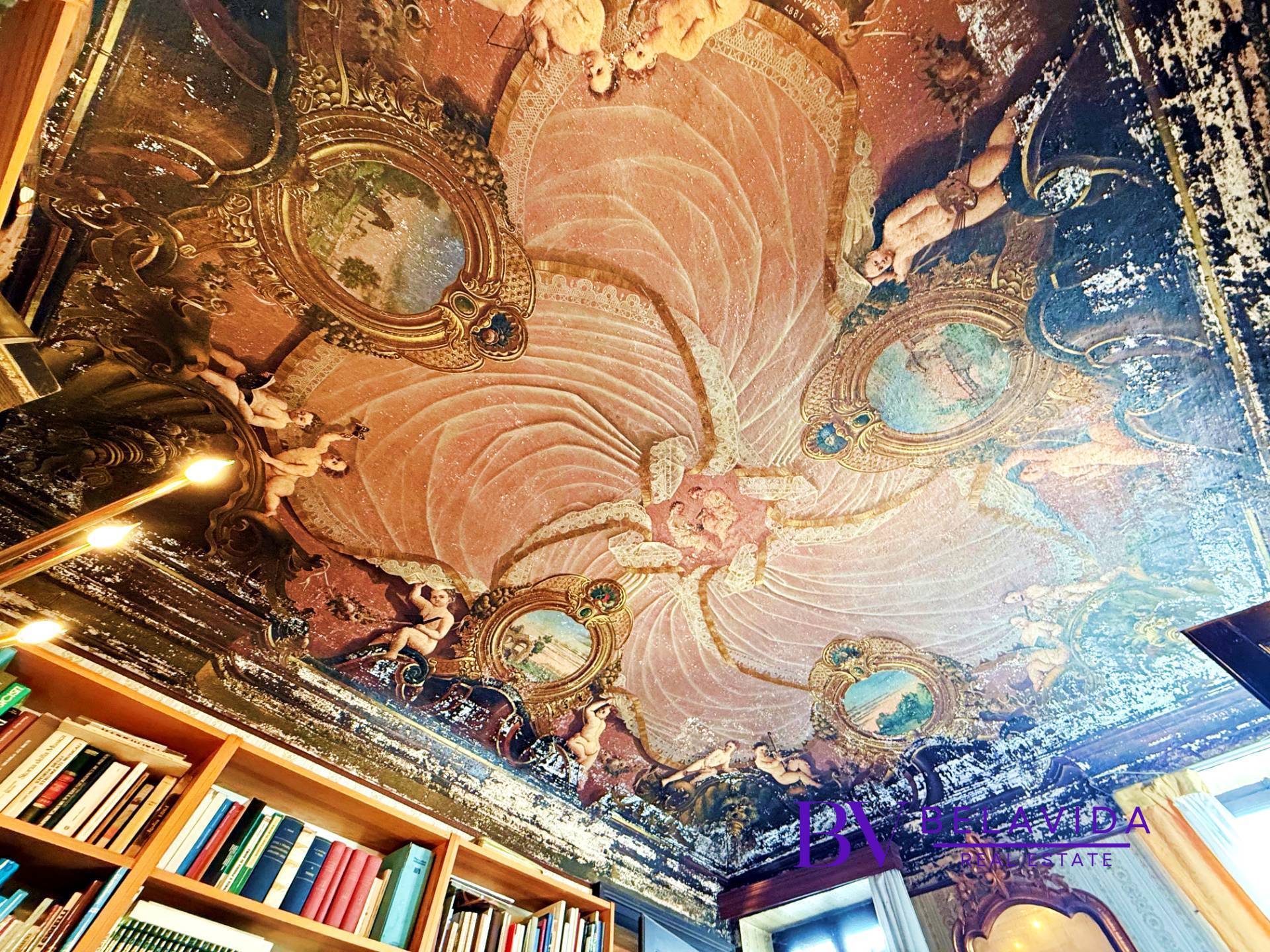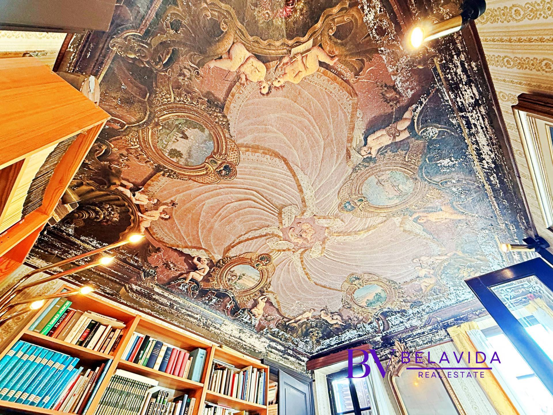 La struttura, perfettamente mantenuta, custodisce elementi originali di straordinaria bellezza: soffitti affrescati, pavimenti in legno antico, infissi storici, camini in marmo e decorazioni ornamentali che donano carattere e prestigio a ogni ambiente.